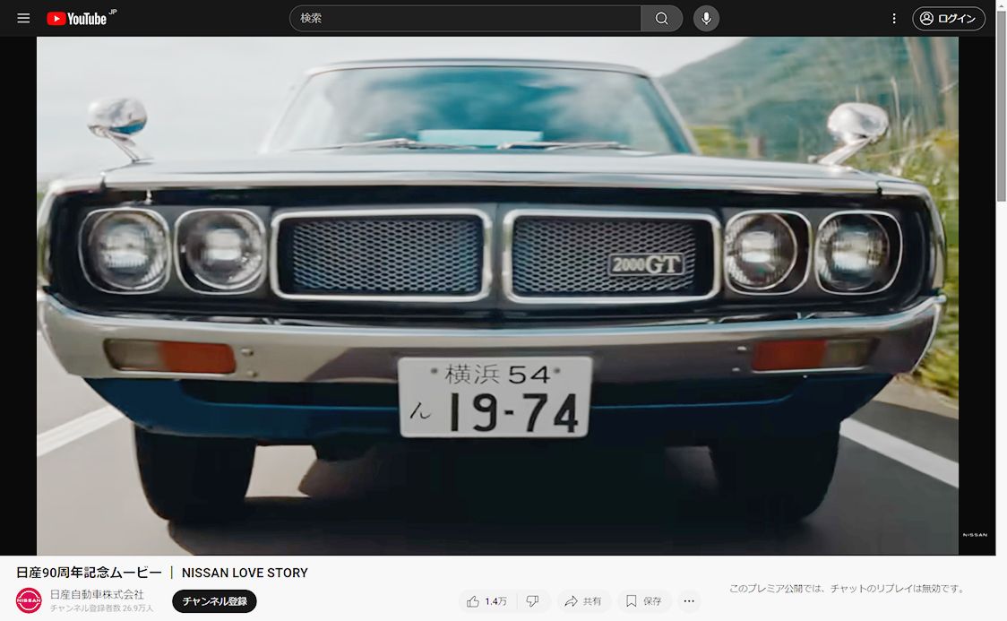 さらに眞栄田郷敦と見上愛を起用した創立90周年記念ムービーを制作、日本テレビの「24時間テレビ」で60秒CMを計4回放送した。なとりとimaseの初コラボ曲「メロドラマ」をBGMに、1950年代から現代まで時代を超えて展開するラブストーリー。ディスコなど各時代のカルチャーや当時の流行ファッション、そして「ダットサン」「ケンメリ」をはじめ歴代の日産車37車種とともに時代の変遷を表現した。