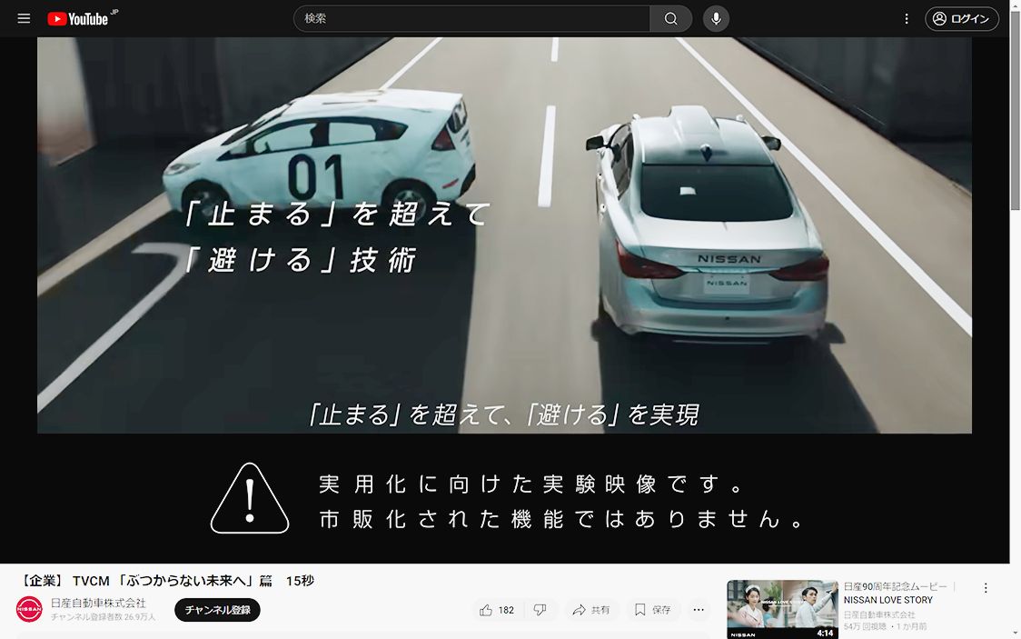 自動運転の試験車両が、コース脇に並ぶコンテナの隙間から次々と飛び出してくる車を回避する実証実験を映すCMを中心にオンエアした。「『止まる』を超えて『避ける』技術」をコピーとした臨場感のある映像表現で先進性をアピール。視聴者からは「自動運転が進化すると、事故の減少が期待できるCM」など、同社技術への関心がうかがえる感想が目立った。