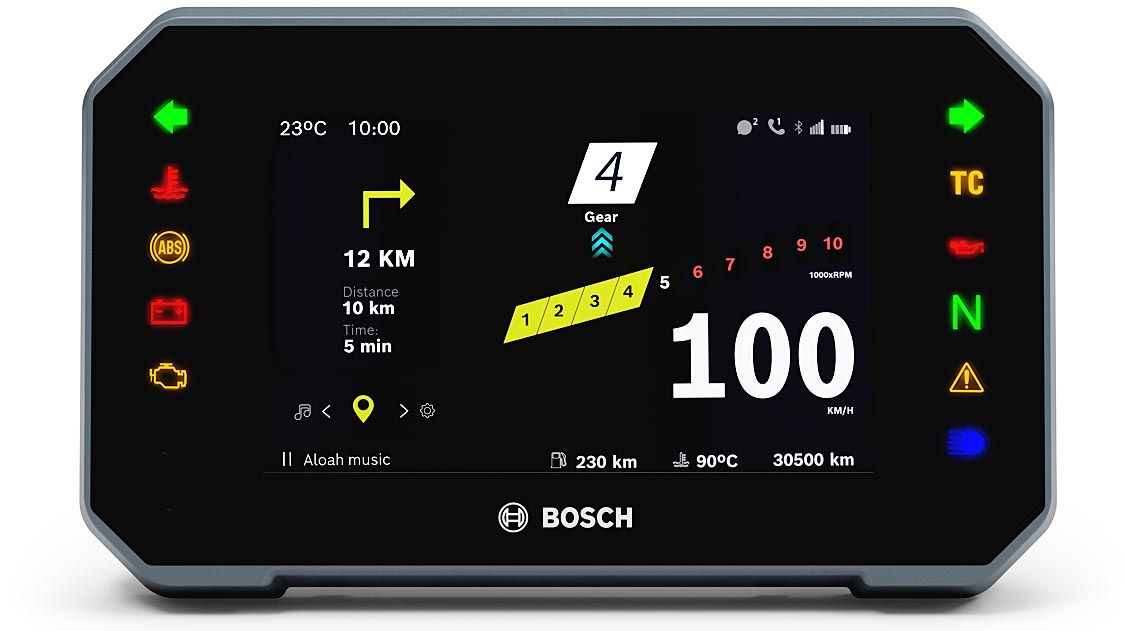ボッシュは、二輪車向けディスプレー「TFTクラスター5インチ」がスズキの新型「V―ストローム1050/1050DE」に採用されたと発表した。ライダーに速度や警告メッセージ、安全運転支援システムなどの情報を表示する。