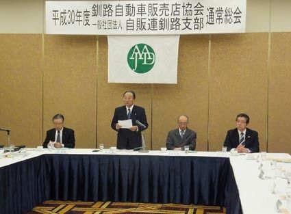 【釧路】自販連釧路支部は「平成30年度通常総会」を市内のホテルで開催した。任期満了に伴う役員改選で池田稔支部長が留任し、新たに副支部長に坂根篤釧路トヨタ社長が就いた。また諸議案を全て可決承認した。 池田支部長は「自動車を取り巻く環境変化に...