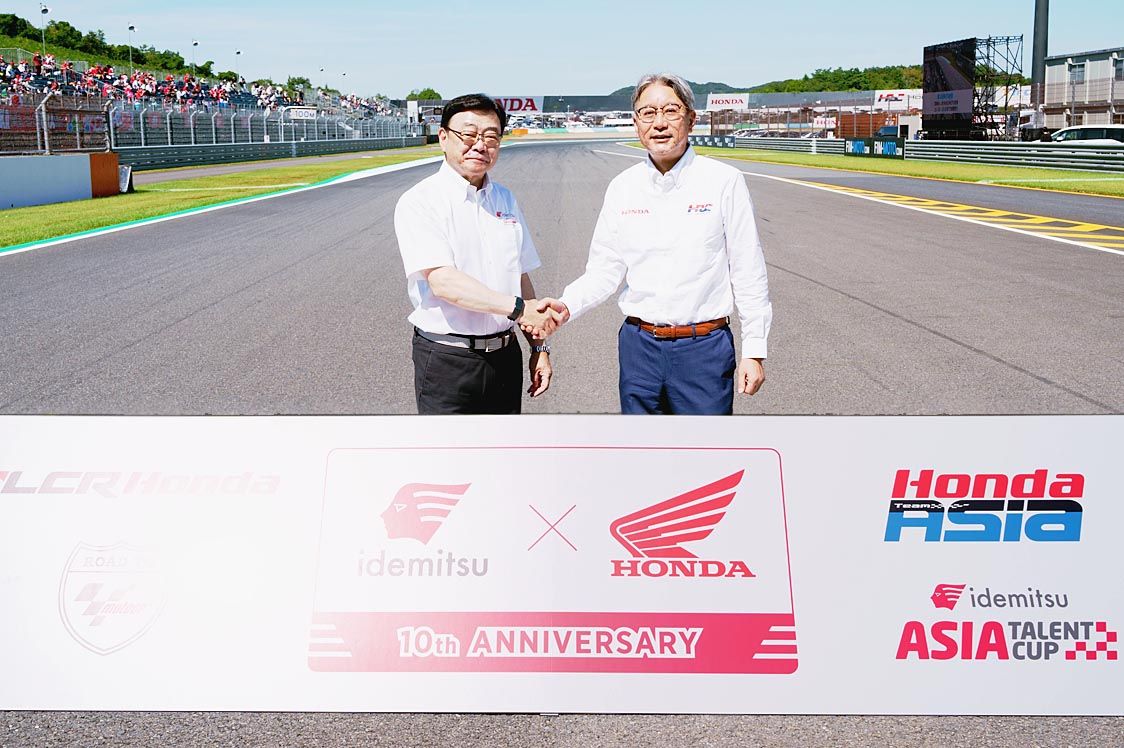 ホンダと出光興産は25日、共同で取り組む二輪ライダー育成プロジェクトが10周年を迎えたと発表した。モビリティリゾートもてぎ(栃木県茂木町)で23~25日に開催された二輪車ロードレース最高峰のモトGPの日本グランプリで記念式典を行った。ホンダの三部敏宏社長と出光の木藤俊一社長らが参加し、今後も選手の育成に注力していくとした。