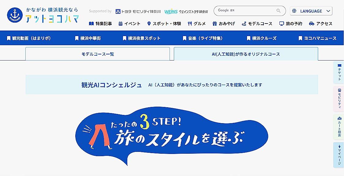 【横浜】KTグループとウエインズトヨタ神奈川が共同で運営するアットヨコハマ(上野健彦代表取締役、宮原漢二代表取締役)は、神奈川県内の観光サービスを提供するウェブサイト「アットヨコハマ」をリニューアルし、10月から開設した。新サイトは人工知...