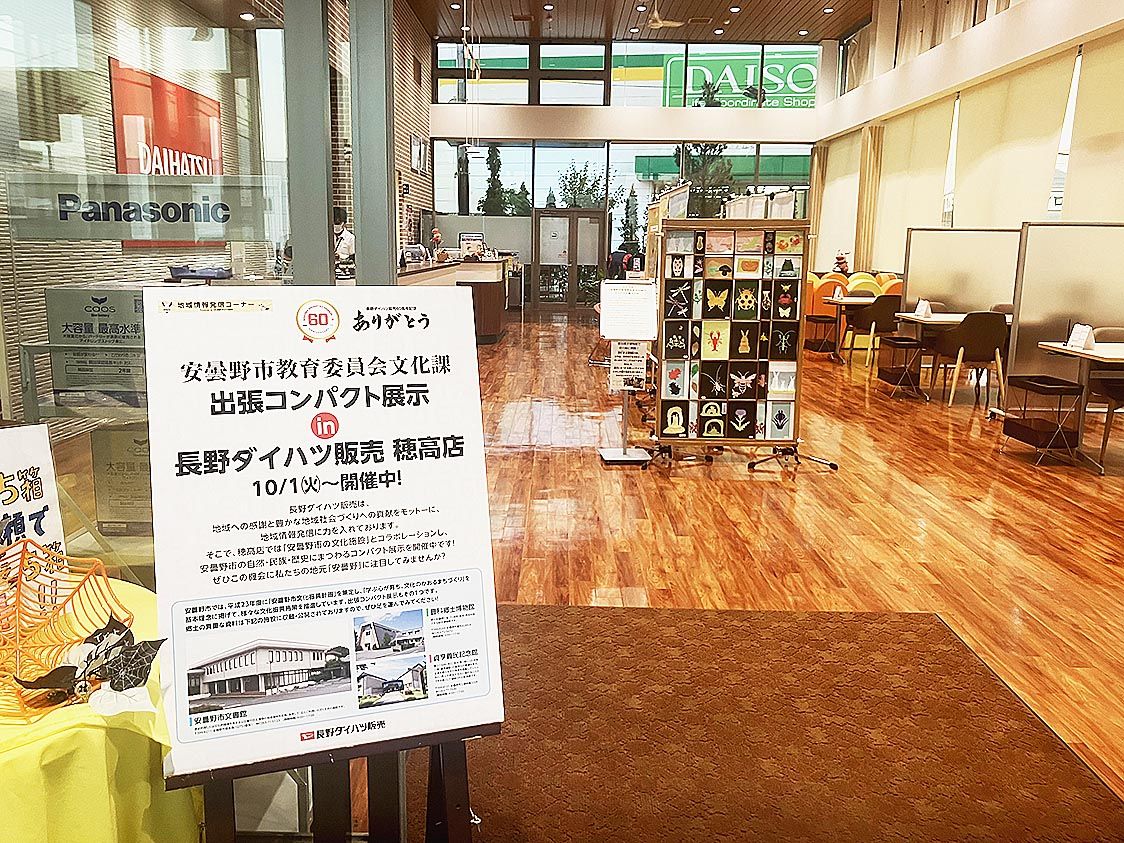 【長野】長野ダイハツ販売(出口浩社長)は、安曇野市の穂高店内で地域の自然・民族・歴史にまつわる「出張コンパクト展示」を開始した。同社は地域情報発信に力を入れており、新市立博物館構想を推進する市とのコラボレーションが実現した。民間企業の展示...