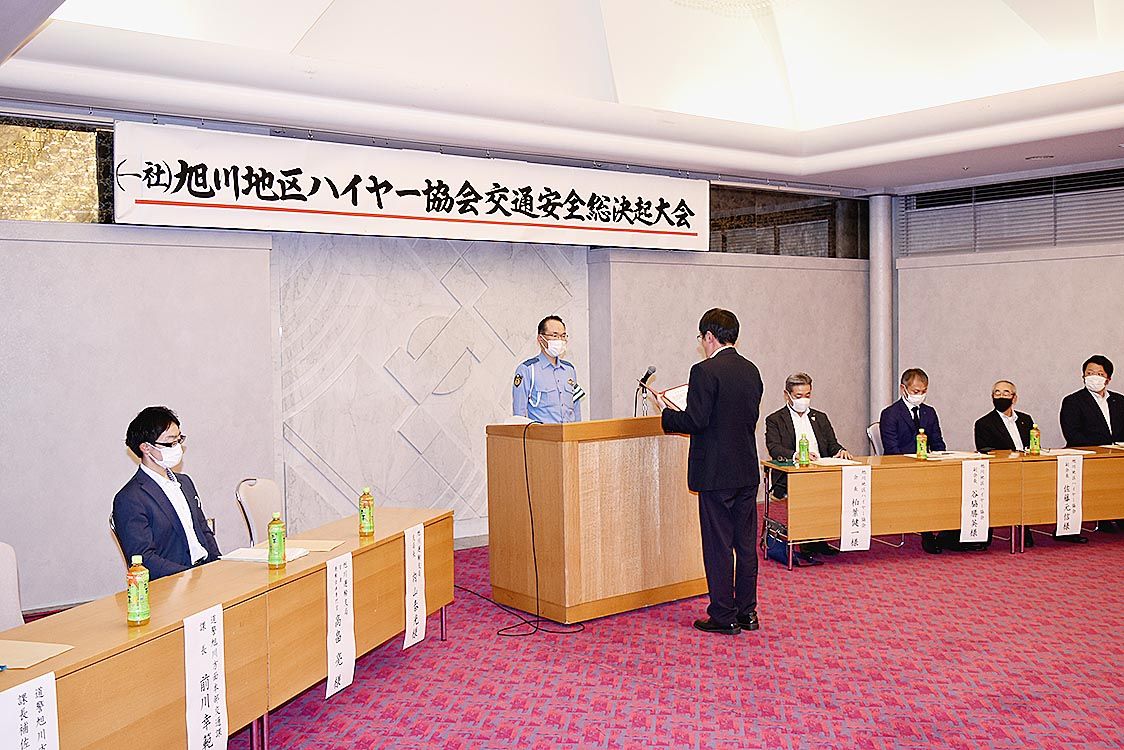 【旭川】旭川地区ハイヤー協会(柏葉健一会長)は先月29日、旭川市大雪クリスタルホールで「交通安全総決起大会」を開催=写真。加盟各社の代表者ら24人が参加し、秋の行楽シーズンから年末の輸送繁忙期に向け、協会一丸となっての交通事故防止徹底を誓...