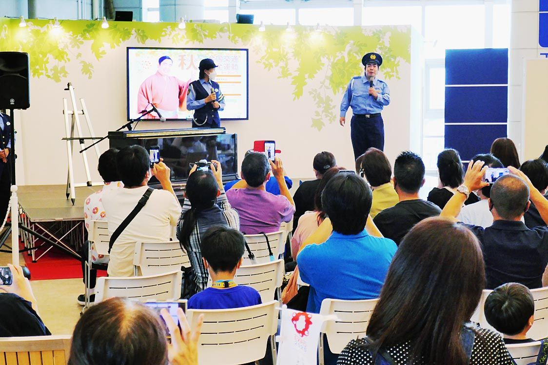 大阪府交通対策協議会は、大阪府吹田市の大阪モノレール万博記念公園駅構内で「交通安全イベント」を開催した=写真。運動のイメージキャラクターを務める演歌歌手の徳永ゆうきさんを招き、大阪府警察本部の警察官と交通安全に関するトークショーなどを行っ...