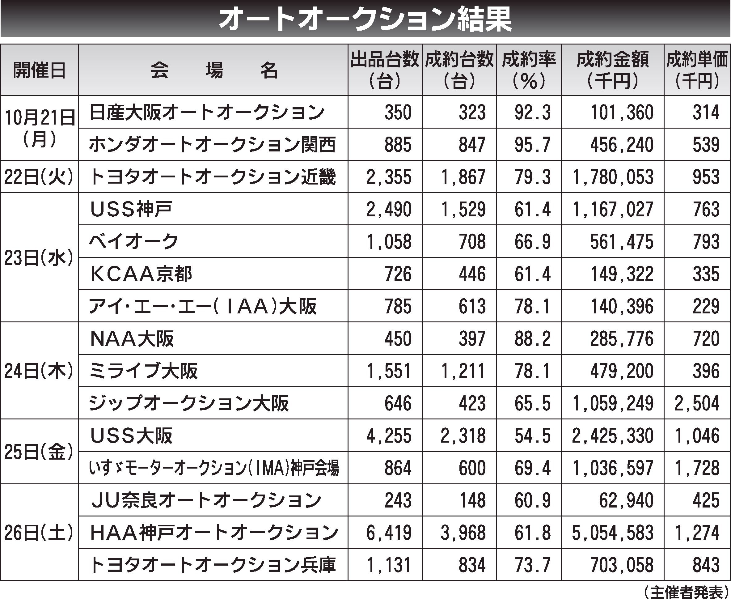 〈オートオークション結果〉近畿地区 2024/10/21~26
