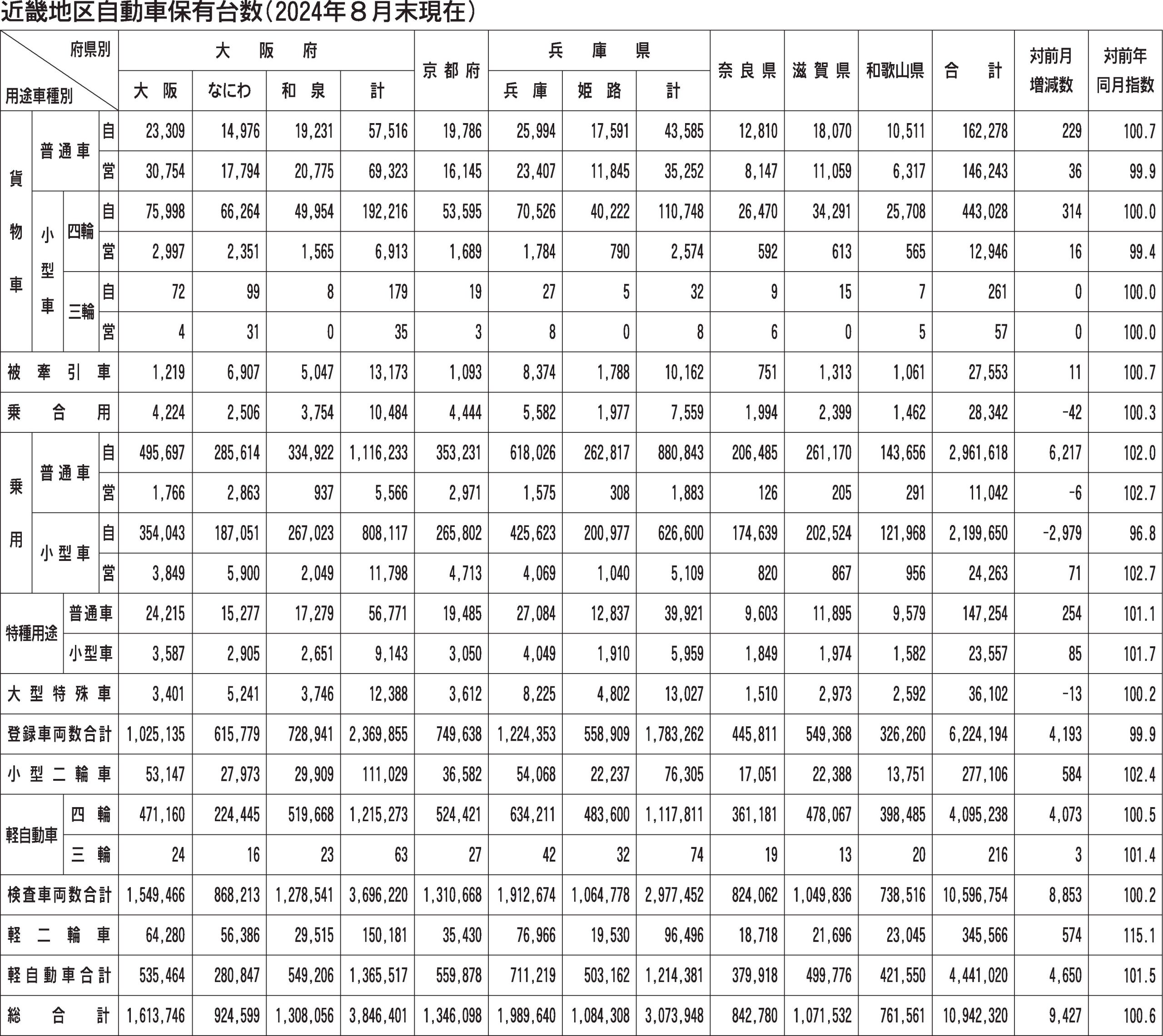 〈近畿地区自動車保有台数(2024年8月末現在)〉