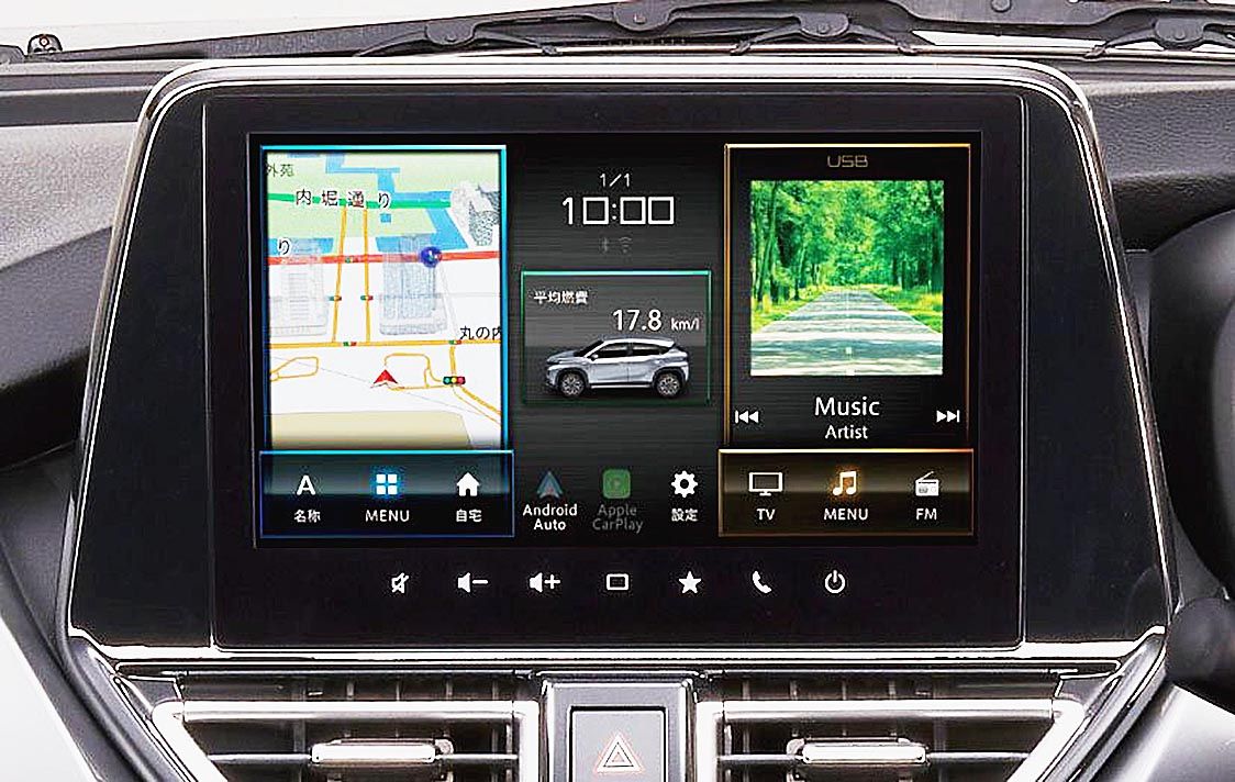 採用されたのはダッシュボードの形状に合わせたフレームデザインの9インチ高精細HDディスプレーを搭載したモデルで、スズキ販売会社装着アクセサリーのドライブレコーダーとの連携が可能だ。HDMI入力や「アップルカープレイ」「アンドロイドオート」などにも対応する。最新地図への更新データも車両購入後の3年間は無料でダウンロードできる。
