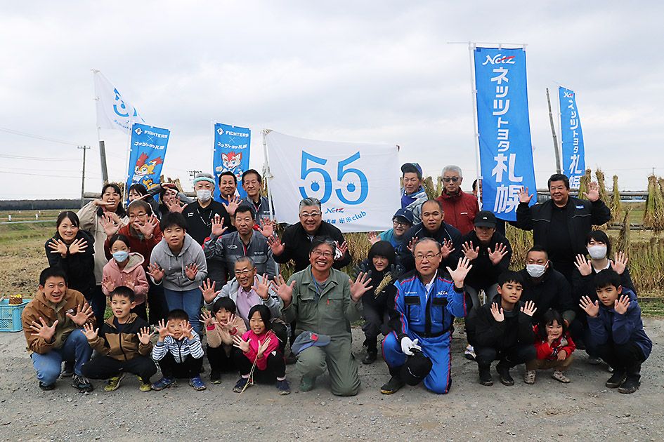 ネッツ札幌、「米米club」の稲刈りに既納客ら34人参加