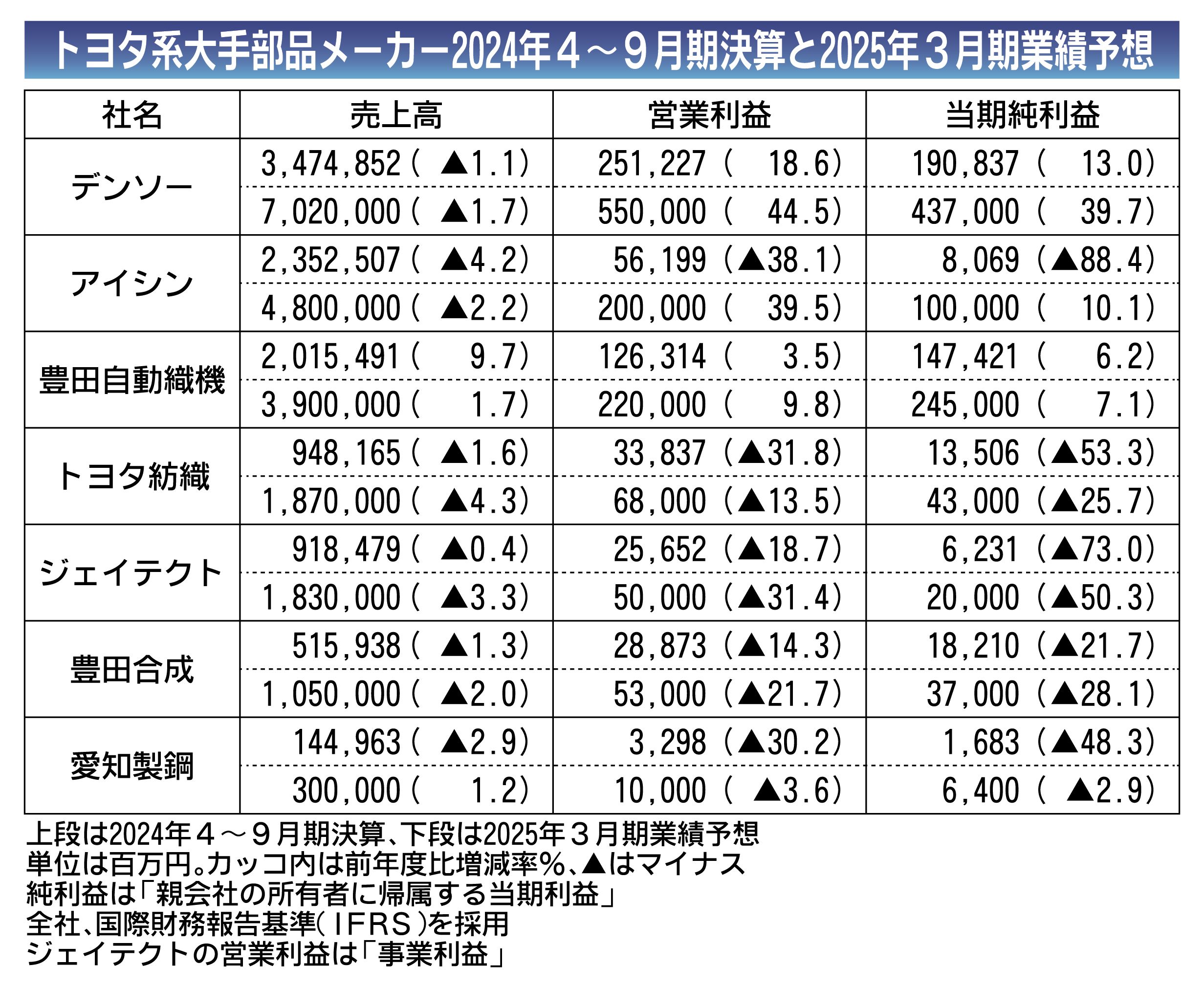 トヨタ系大手部品メーカー7社の2024年4~9月期決算、5社が通期見通し下方修正 先行き警戒強める