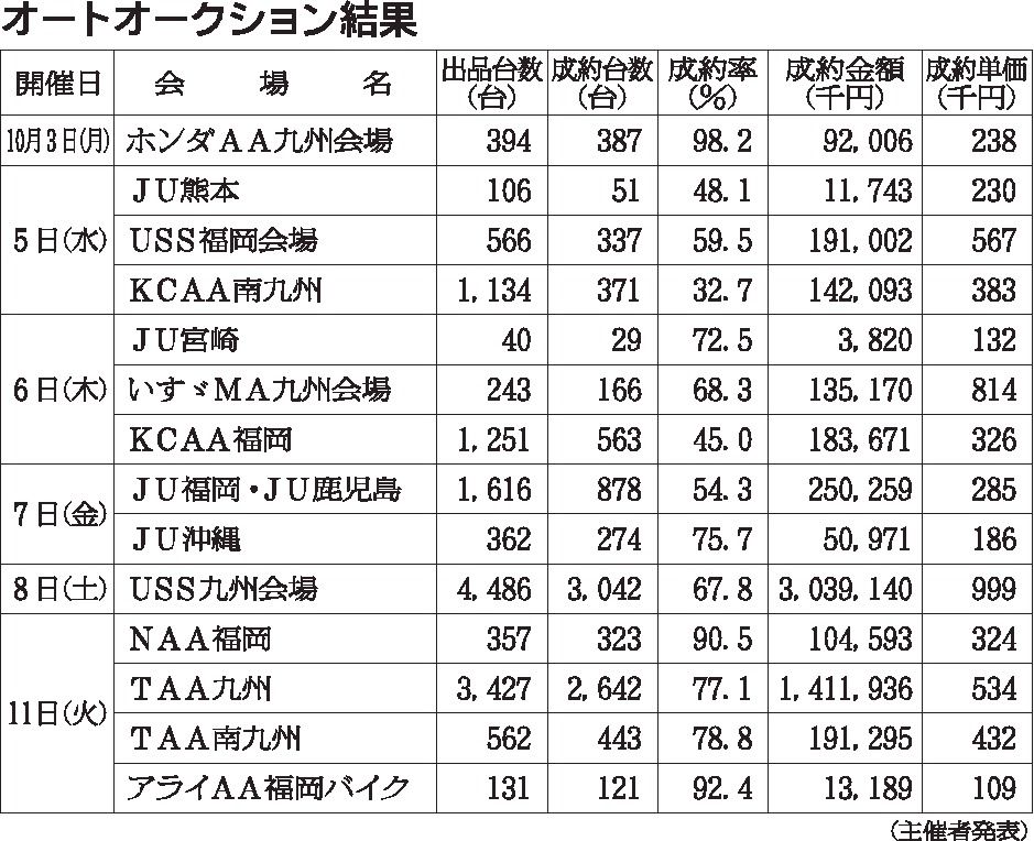 〈オートオークション結果〉九州地区 2022/10/3~11
