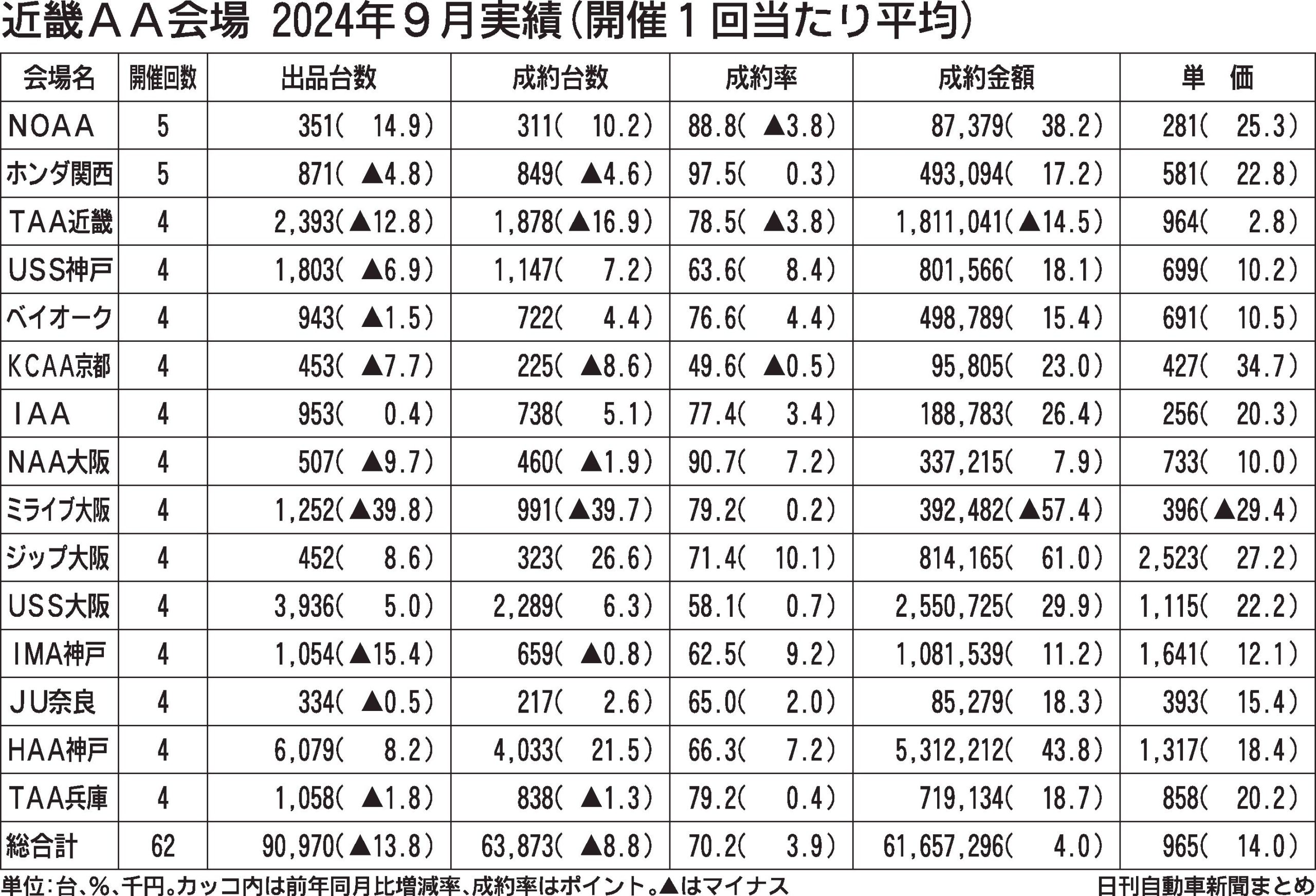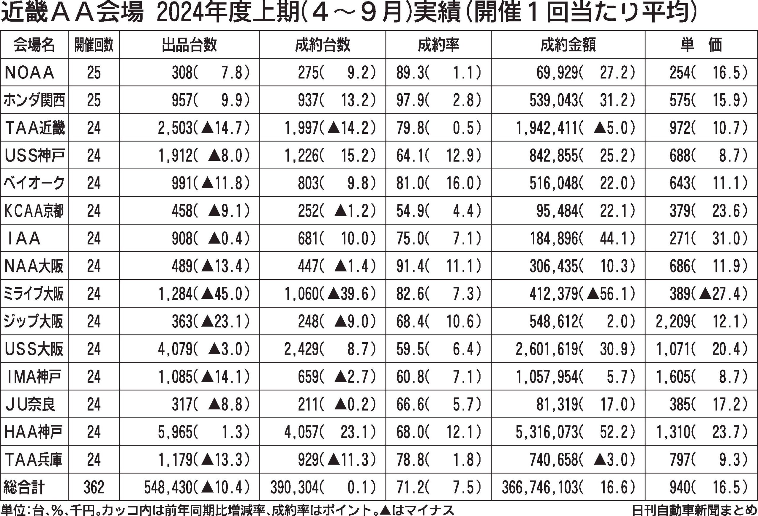 2024年度上期近畿AA、出品が1割減 成約台数は横ばい