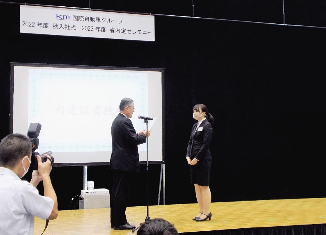 国際自動車(石井仁社長)は同社グループの「2022年度内定式・秋入社式」を催した=写真。今年度の内定者は133人で、出席者は120人。内訳はタクシー乗務社員106人(女性20人)、ハイヤー乗務社員16人(同5人)、総合職6人(同2人)、一...