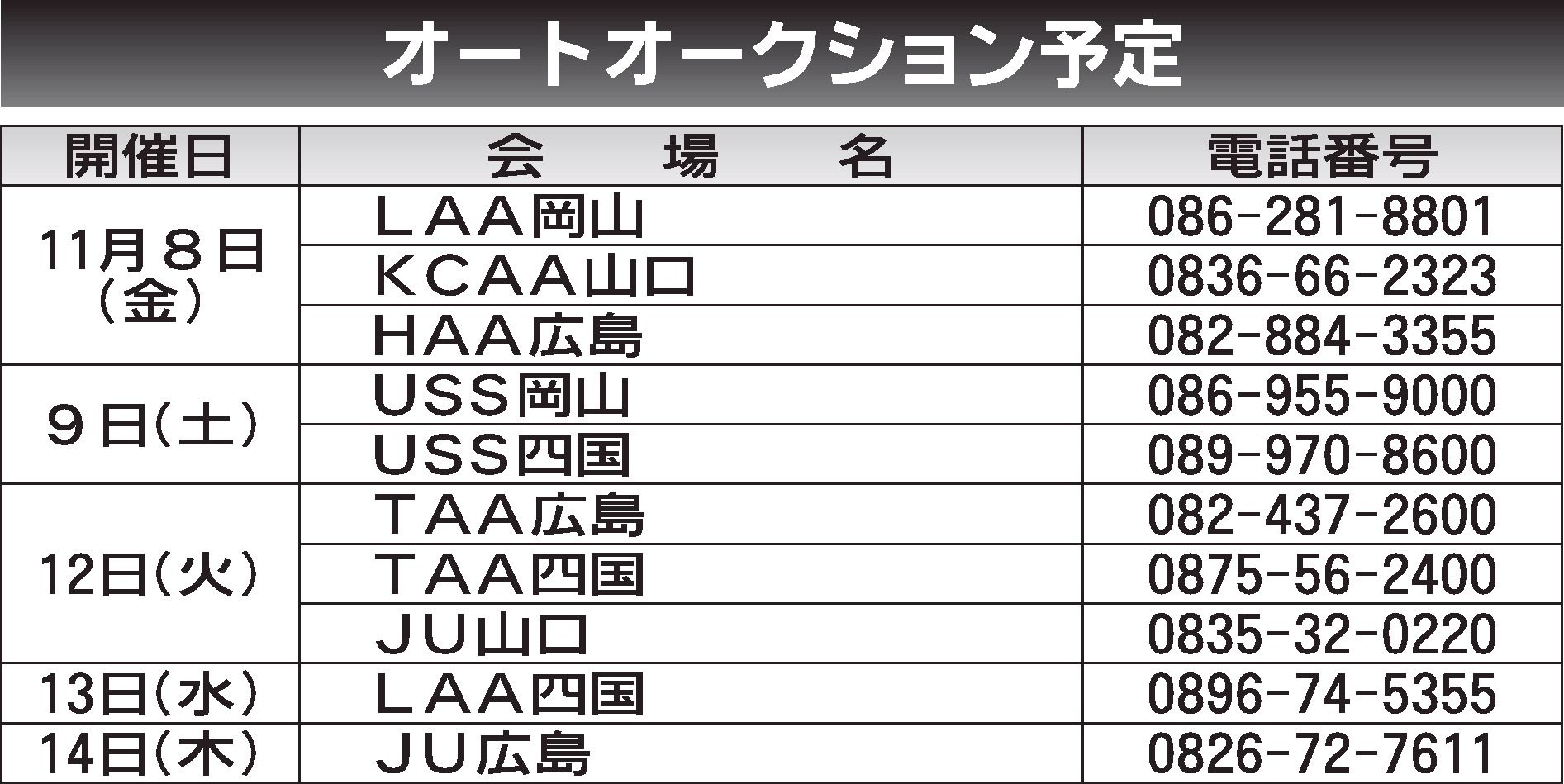 〈オートオークション予定〉中・四国地区 2025/12/26~2026/1/8