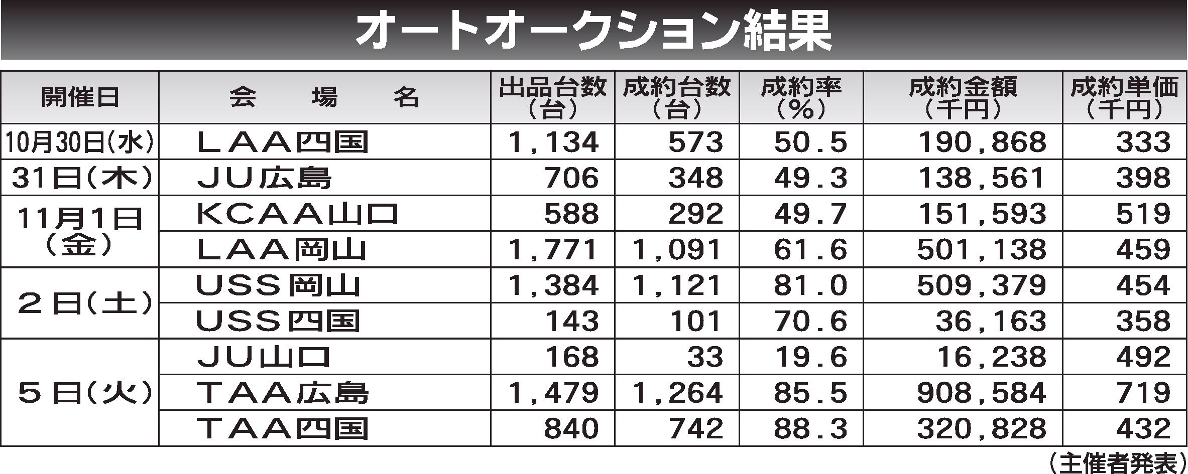 〈オートオークション結果〉中四国地区 2024/10/30~11/5