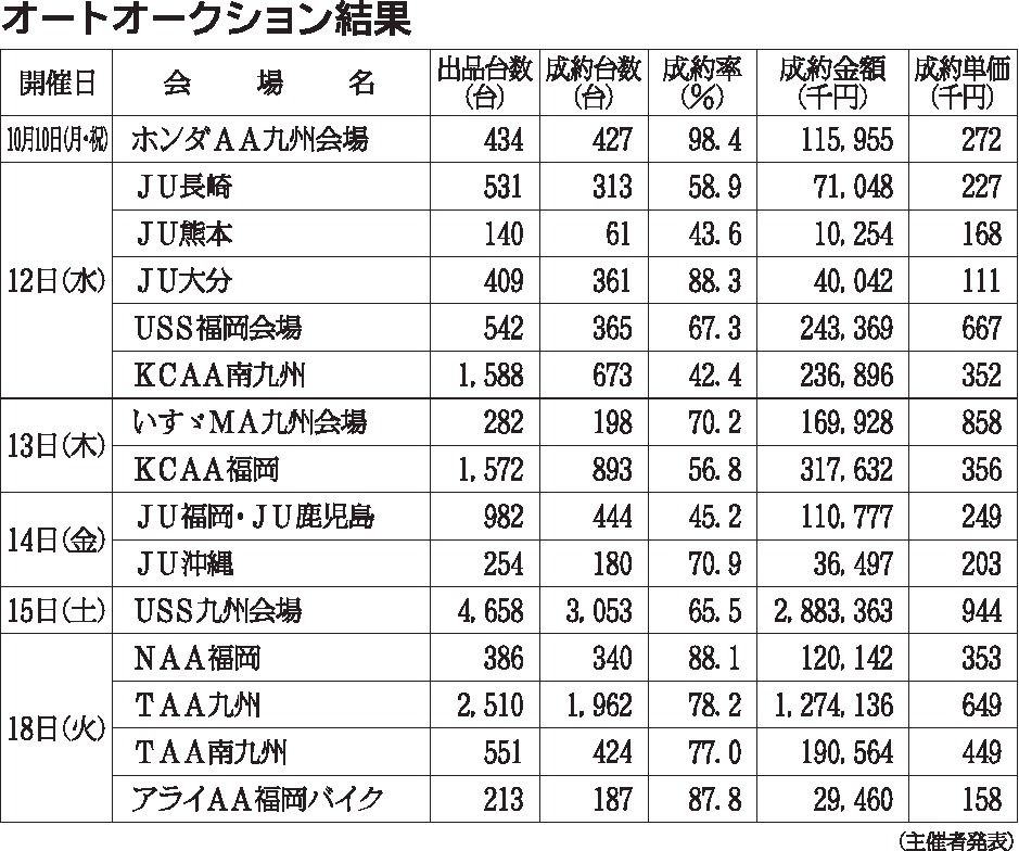 〈オートオークション結果〉九州・沖縄地区 2022/10/10~18