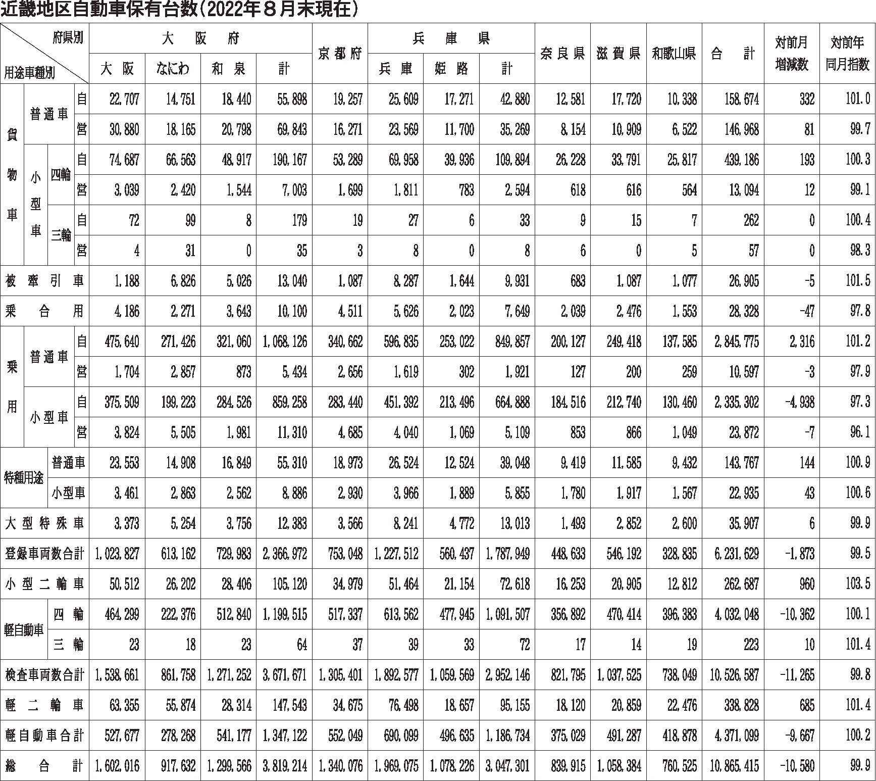 〈近畿地区自動車保有台数(2022年8月末現在)〉