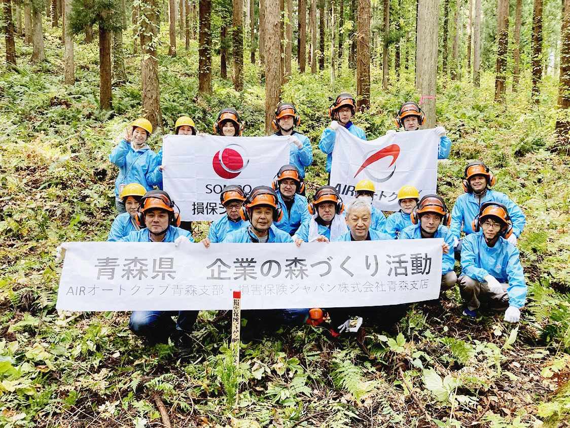 AIR青森と損保ジャパン青森支店 県有林で植樹活動