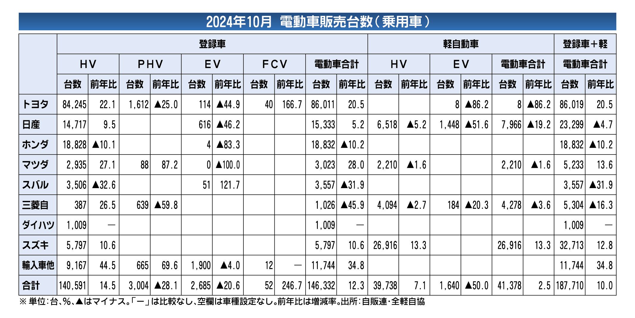 2024年10月の国内電動車販売、10%増で4カ月連続の前年超え