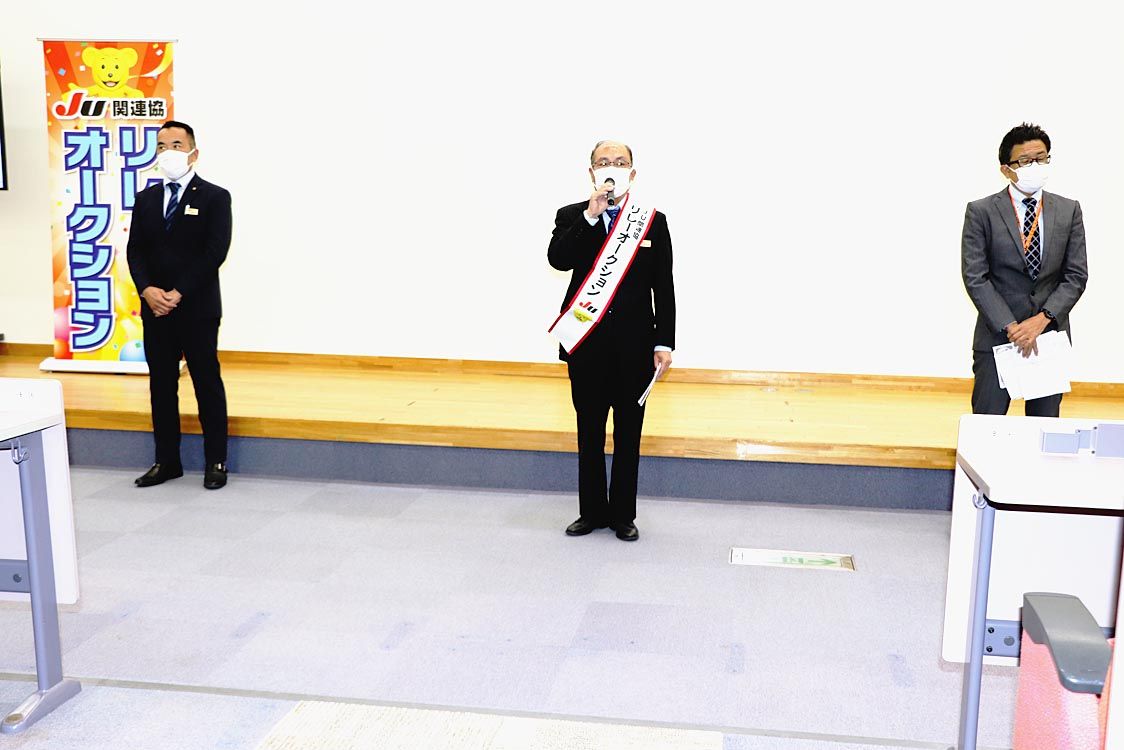 【前橋】JU群馬(神保文明理事長)は、「関連協オータムリレー・全支部合同記念オートオークション(AA)」を開催した=写真。 セレモニーは、新型コロナウイルス感染症再拡大防止対策を引き続き徹底して実施。オータムリレーのたすきをあらかじめ身に...