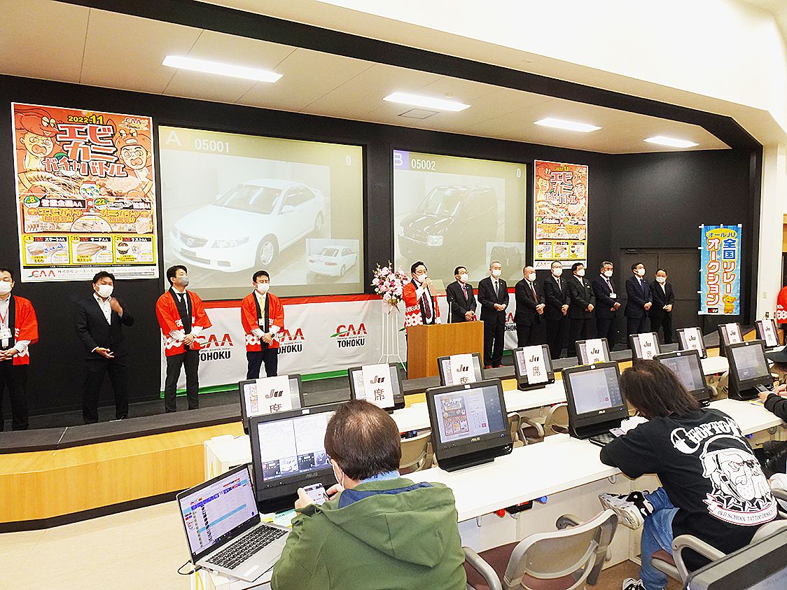 【盛岡】岩手県中古自動車販売商工組合(JU岩手、小原隆孝理事長)とシーエーエー東北(CAA東北、斉藤啓太社長)は、CAA東北会場で「JU岩手青年部合同&CAA東北 謝恩ジャンボオークション」を開催した=写真。出品は目標1500台に対して1...
