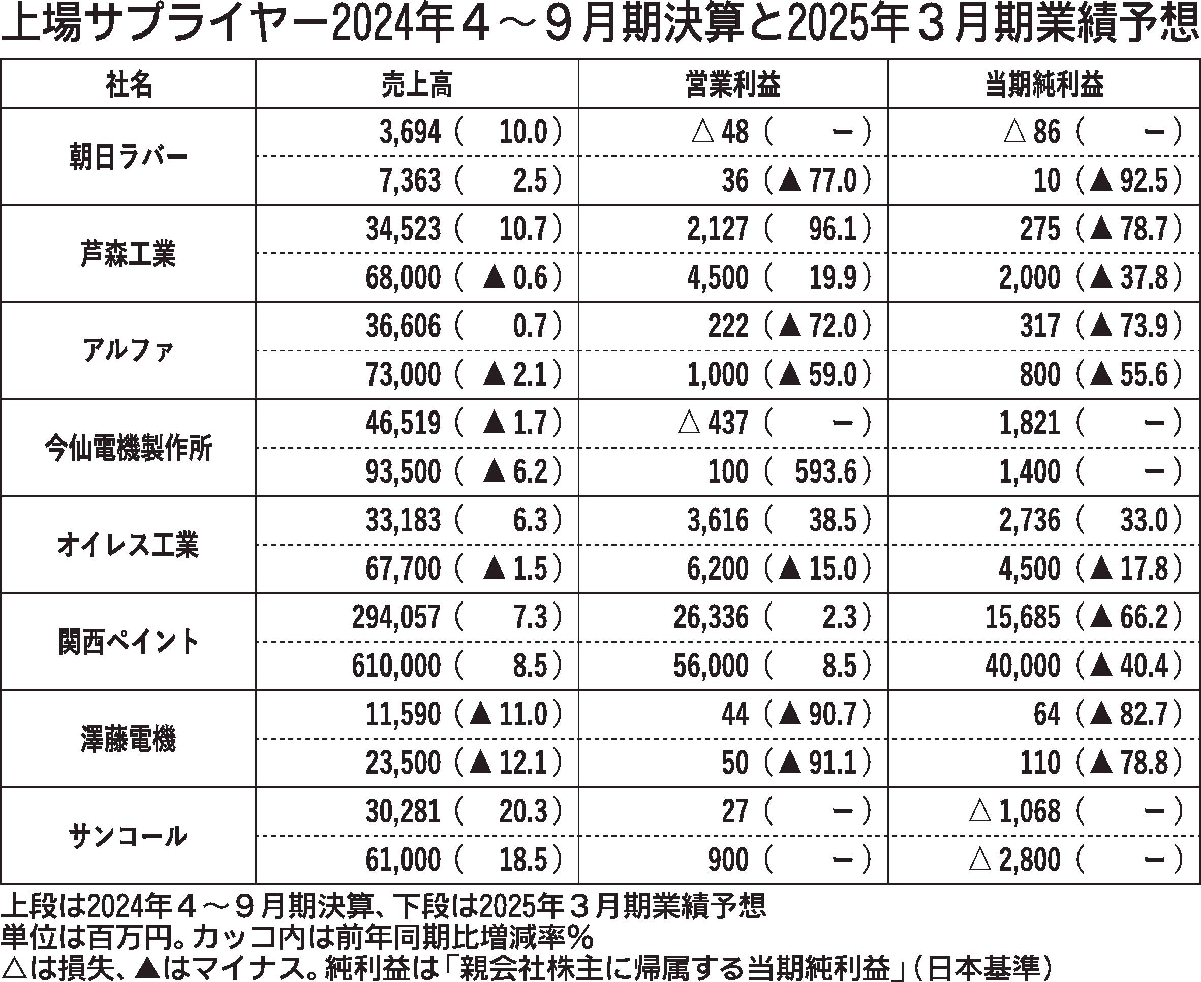 〈上場サプライヤー2024年4~9月期決算と2025年3月期業績予想〉(11/8付)