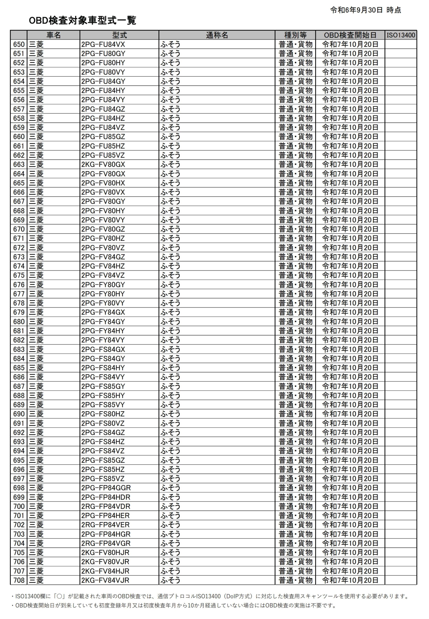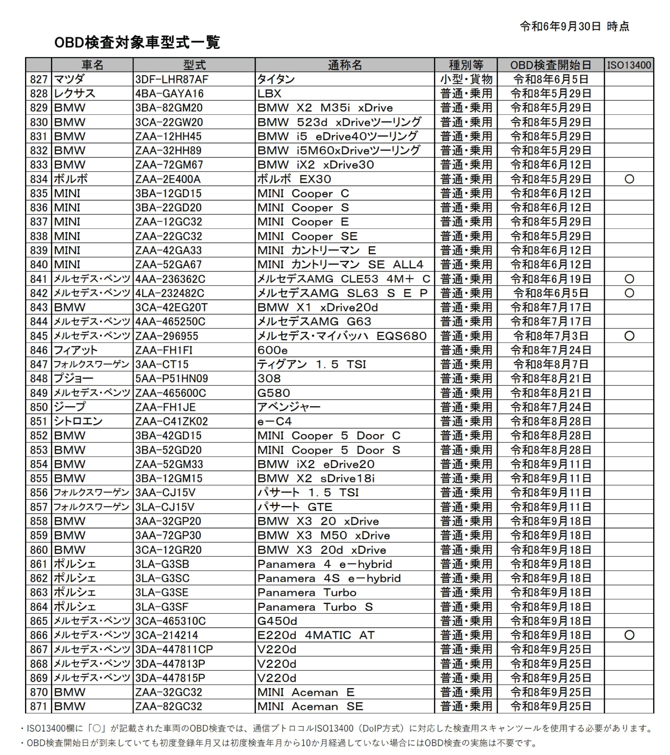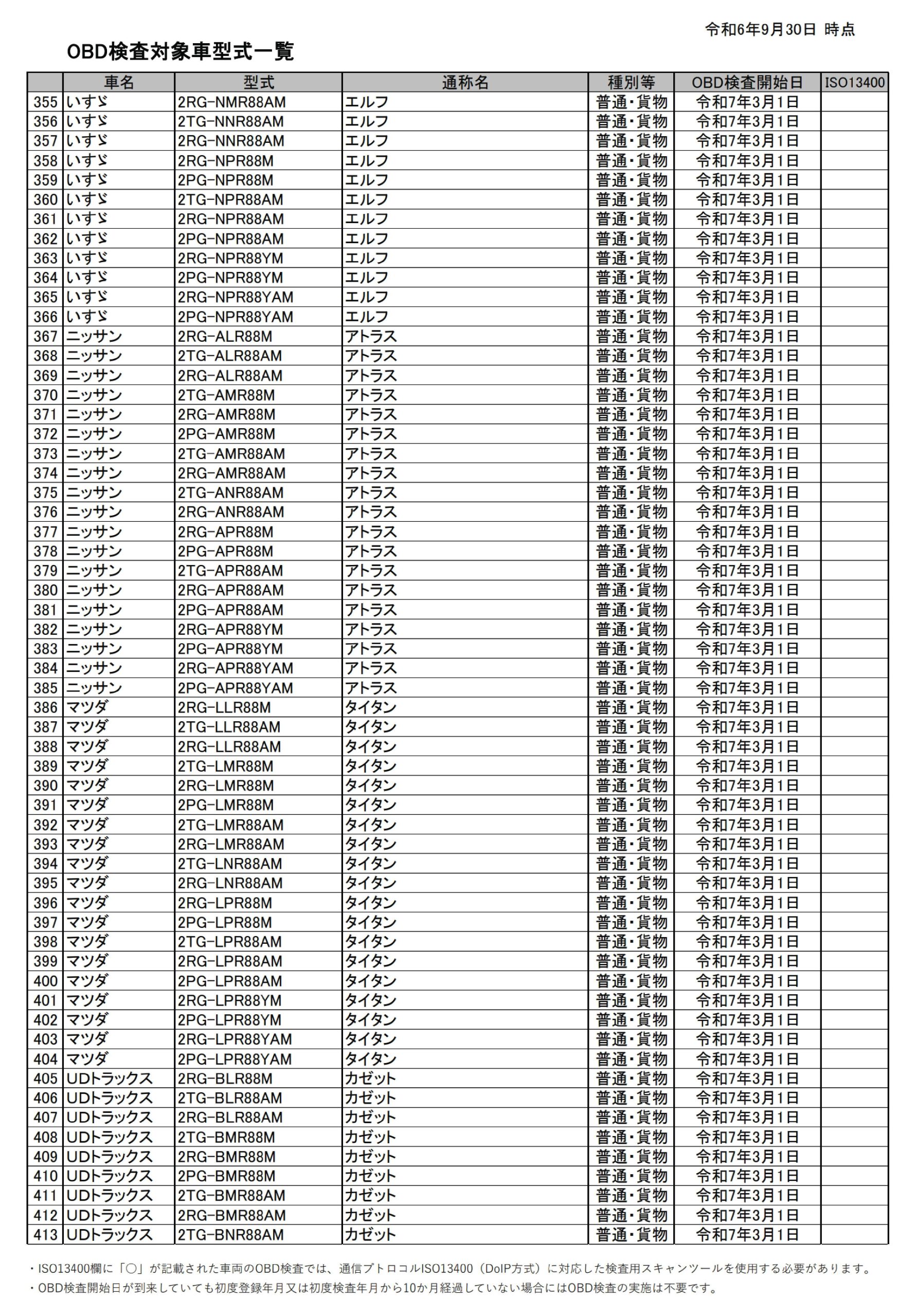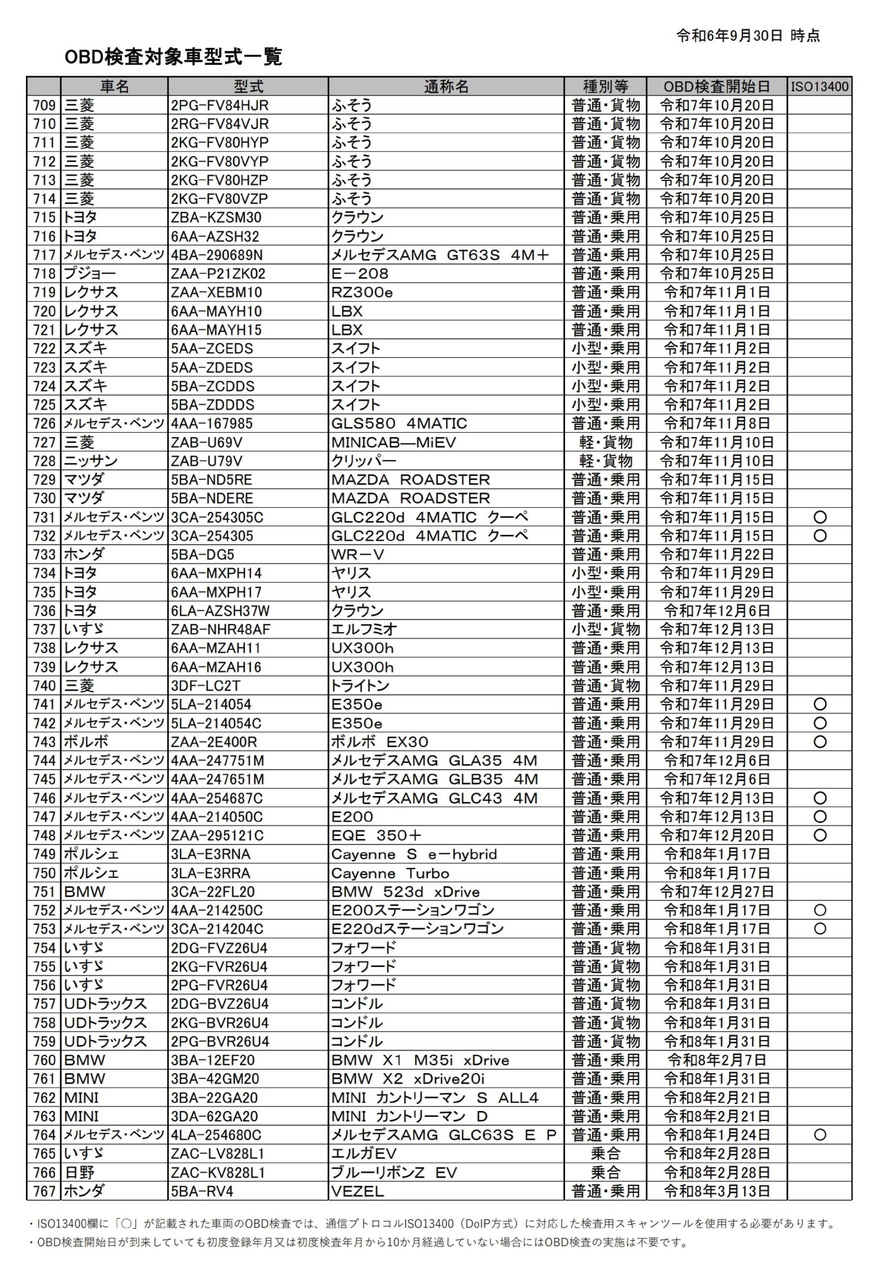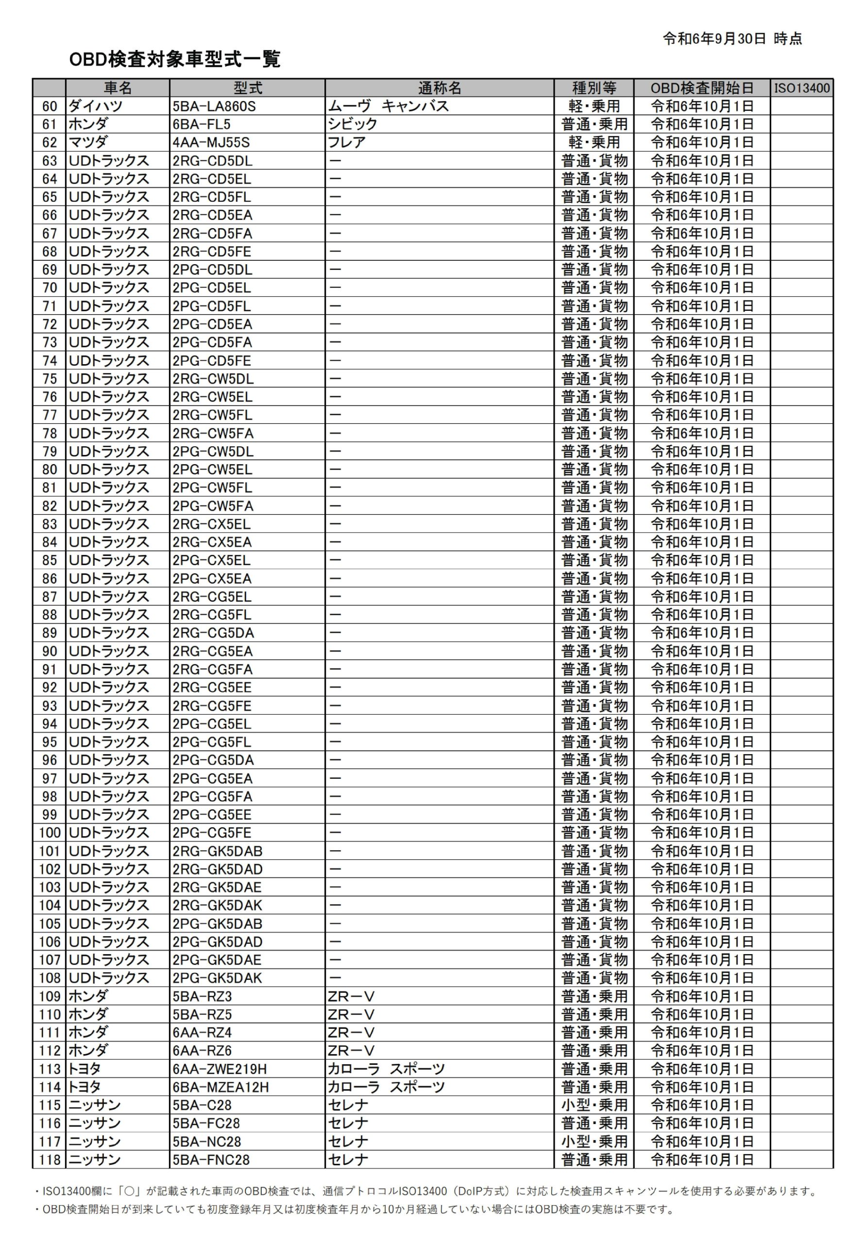 〈OBD検査〉対象車種の型式一覧(2024/9/30現在)