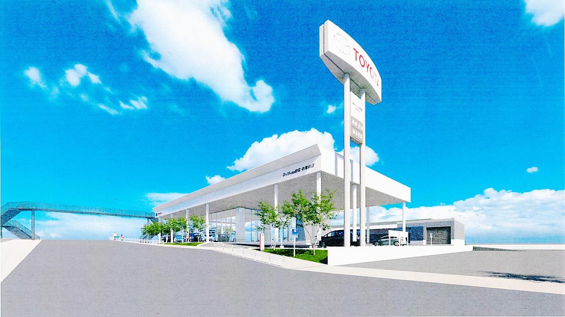 【岐阜】ネッツトヨタ岐阜(田口隆男社長)は、中津川店(岐阜県中津川市)を移転、新築し11日に営業を開始する=完成予想図。敷地面積は現店舗の約2・6倍にあたる6714平方㍍に増え、同社の店舗では最大となる。店舗の延べ床面積も現店舗の約1・5...