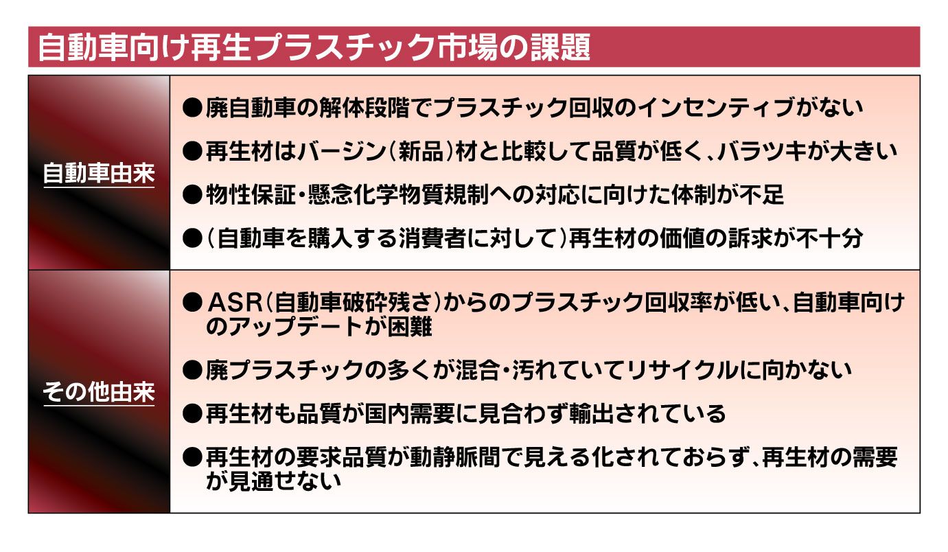 自動車向け再生プラスチック市場の構築を目指す「産学官コンソーシアム」が20日に設立された。参画団体らは今年度中にアクションプラン(行動計画)をまとめる。欧州の「ELV(使用済み車)規則」の動向を注視しつつ、オールジャパンで対応を進める狙い...
