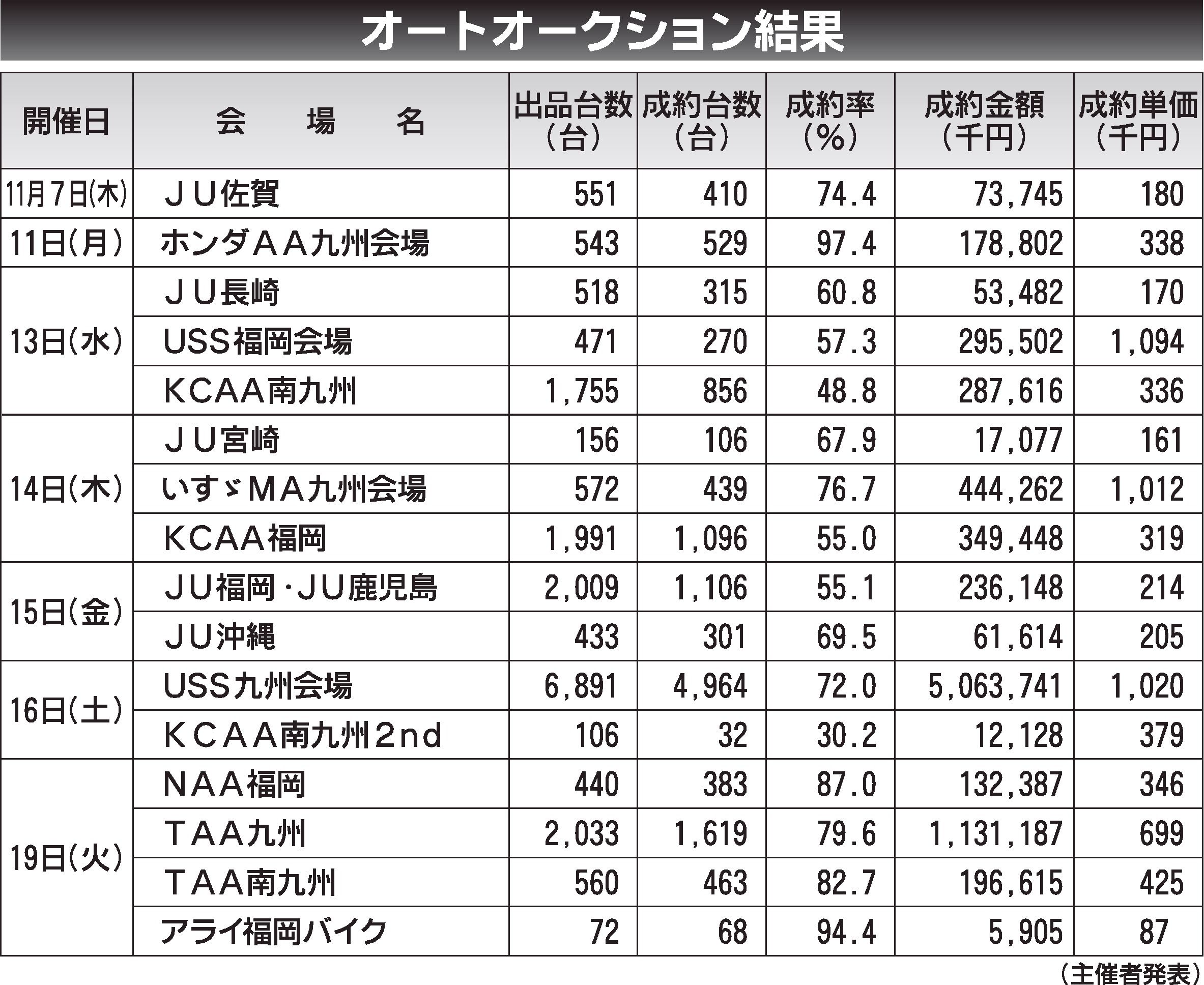 〈オートオークション結果〉九州地区 2024/11/7~19