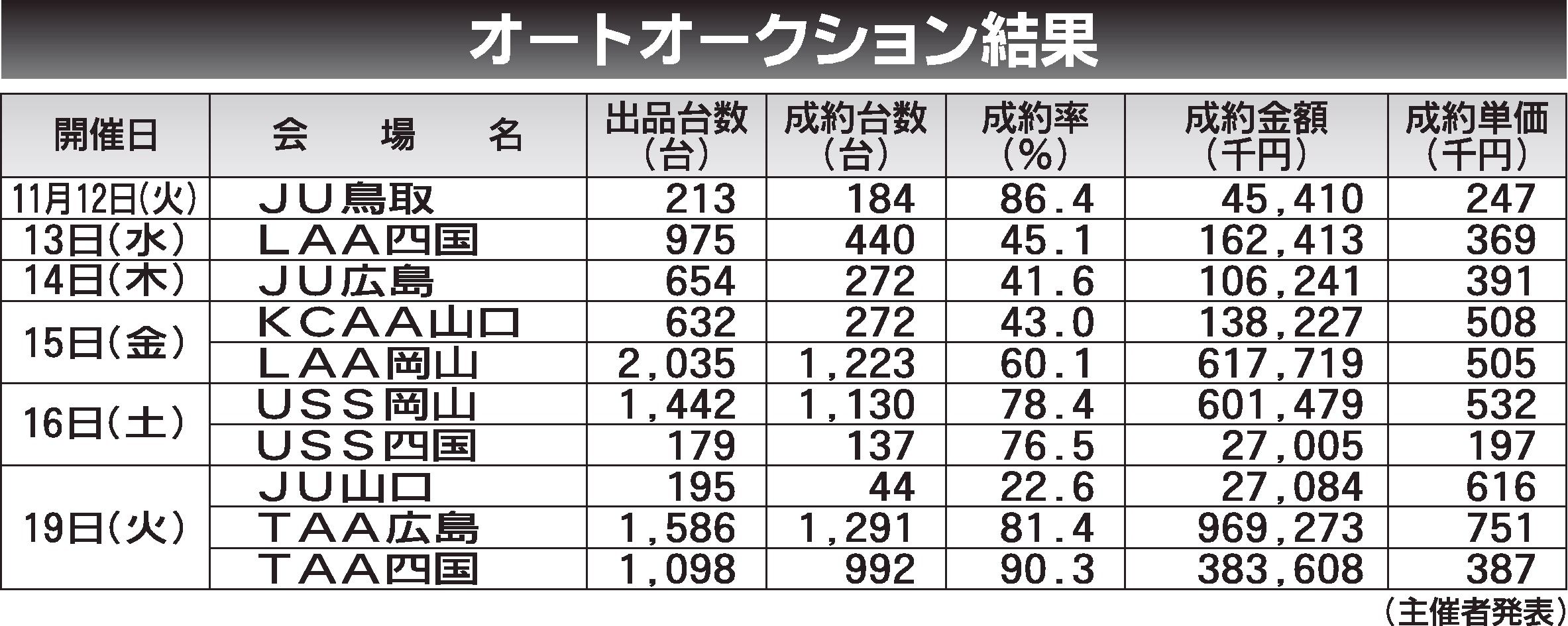 〈オートオークション結果〉中四国地区 2024/11/12~19