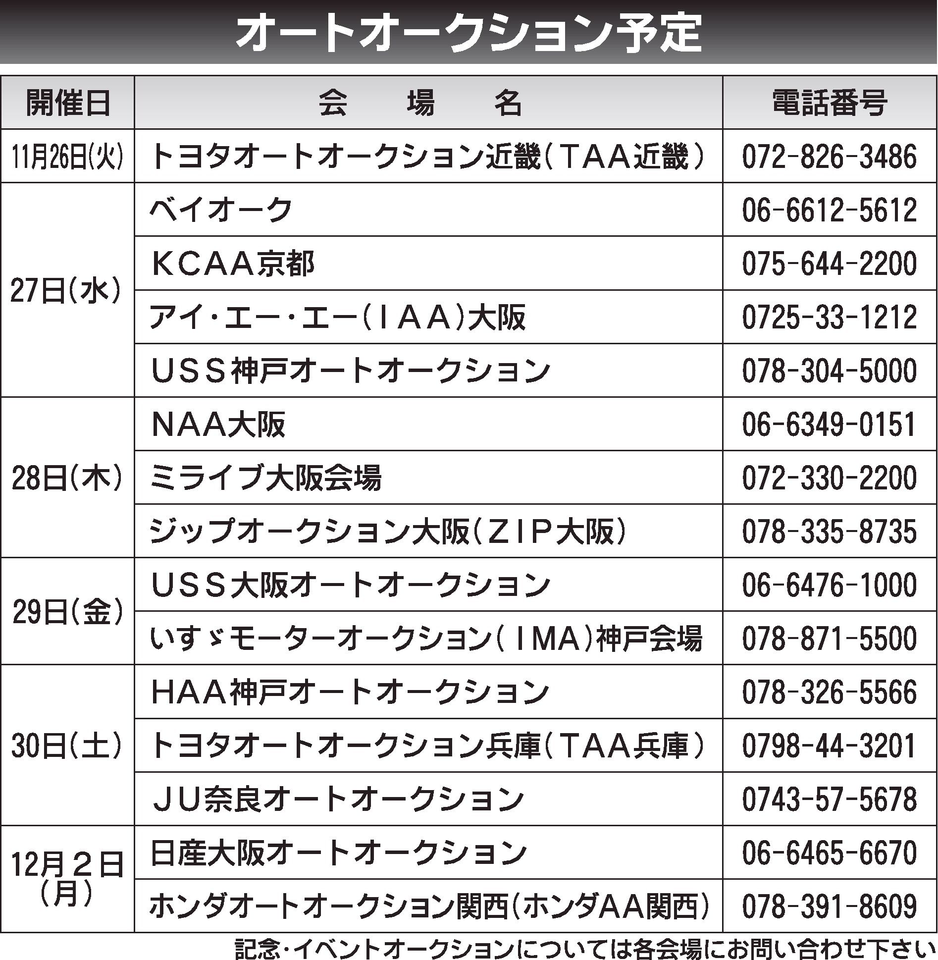 〈オートオークション予定〉近畿地区 2024/11/26~12/2