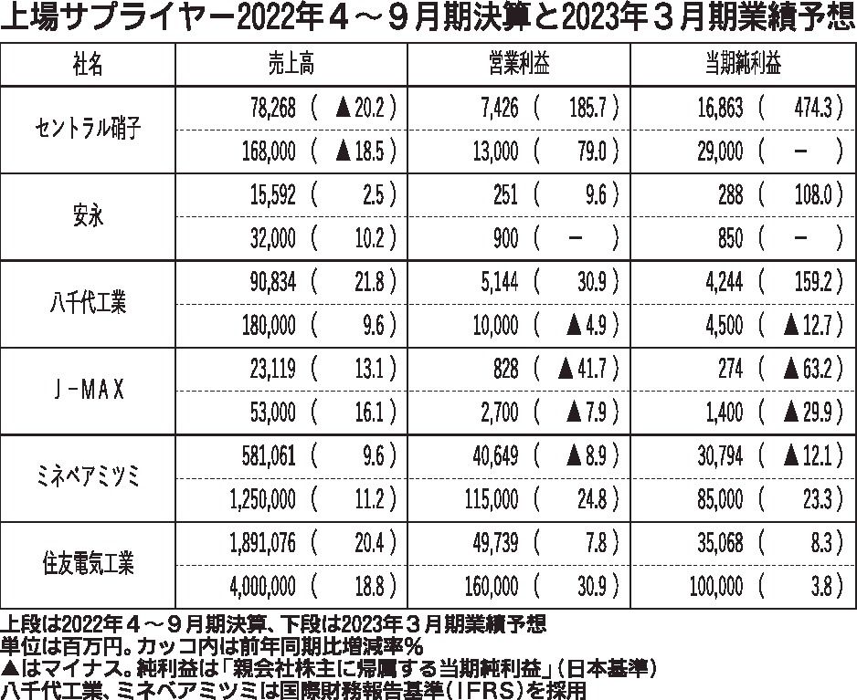 〈上場サプライヤー2022年4~9月期決算と2023年3月期業績予想〉