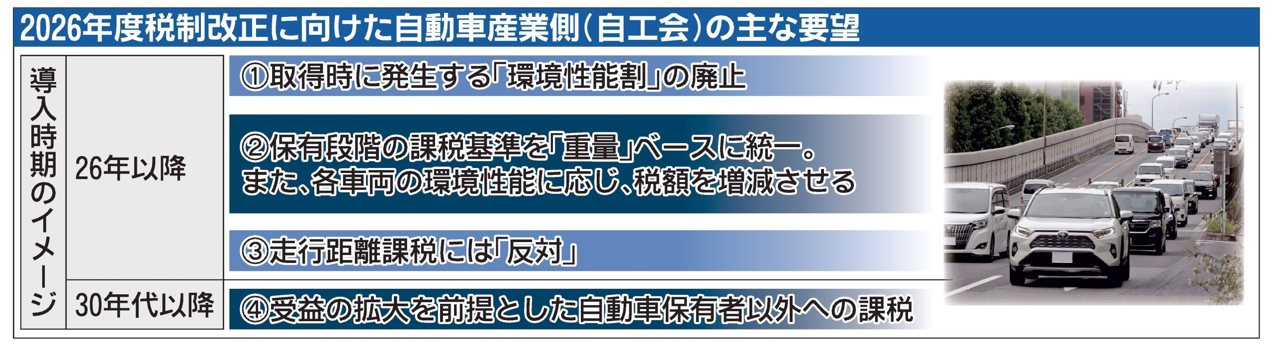 これから政府・与党で始まる税制改正論議は、電気自動車(EV)時代の自動車税制のあり方を占う天王山となりそうだ。自動車業界はすでに、保有課税を一本化して課税基準を車重ベースにする独自案をまとめた。課税負担を軽くして代替期間を縮め、自動車の産...