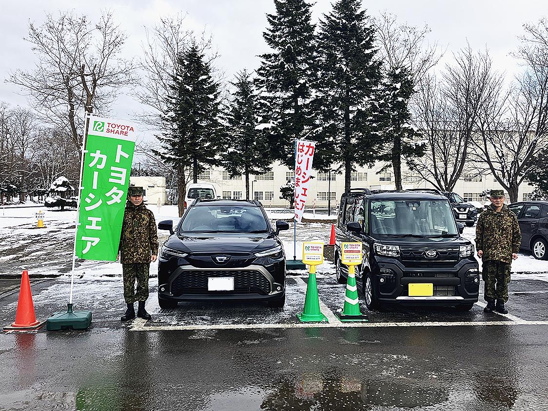 ネッツトヨタ札幌(鎌田直之社長)とダイハツ北海道(溝田健社長)は25日、陸上自衛隊南恵庭駐屯地にカーシェアリングサービス「トヨタシェア」の車両を配置し、運用を開始した。道内の自衛隊に配置するのは、名寄駐屯地に続いて2例目。 両社の担当者が...