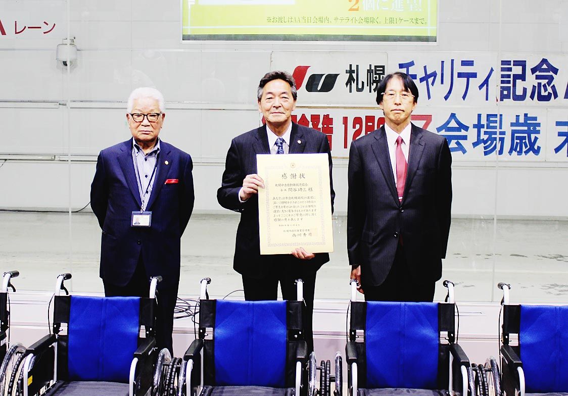 札幌中古自動車販売協会・札幌地方中古自動車販売事業協同組合(JU札幌、問谷功三会長・理事長)は、市立札幌病院に車いす5台を寄贈した。JU札幌の土井公捷副会長が市立札幌病院の西川秀司病院長に目録を手渡し、同病院から感謝状が授与された。 社会...