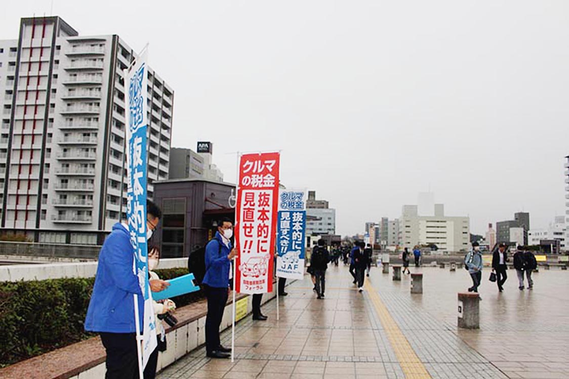 〈自動車税制見直しJAFが街頭活動〉茨城支部