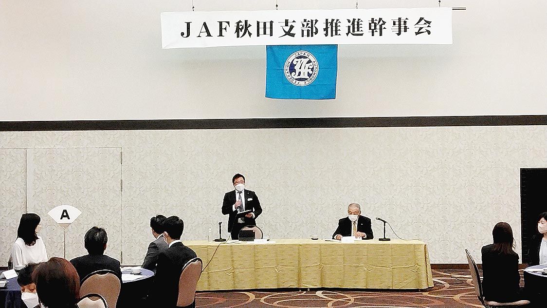 【秋田】日本自動車連盟(JAF)秋田支部(伊藤哲充支部長)は秋田市で「第109回推進幹事会」を開催した=写真。2022年9月に実施したロードサービス(RS)隊員向けの電気自動車(EV)講習会の内容を説明し、22年1~9月の会員獲得状況など...