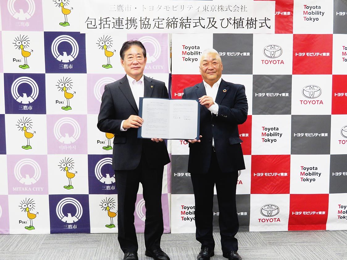 トヨタモビリティ東京(TM東京、佐藤康彦社長)は、三鷹市(河村孝市長)と「包括的な連携協力に関する協定」を締結した=写真。同社が都内の自治体と同様の協定を締結するのは中野区、江戸川区、世田谷区に次いで4例目となる。 同協定は2者が相互連携...