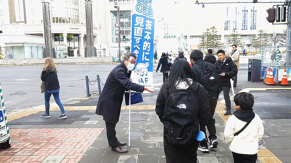 日本自動車連盟(JAF)札幌支部(横井隆支部長)は、JR札幌駅周辺で自動車税制の見直しを求める街頭活動を実施した。駅利用者ら400人にチラシやノベルティを配布し、過重な税負担の軽減などを訴えた。 JAF職員のほか、日本自動車販売協会連合会...