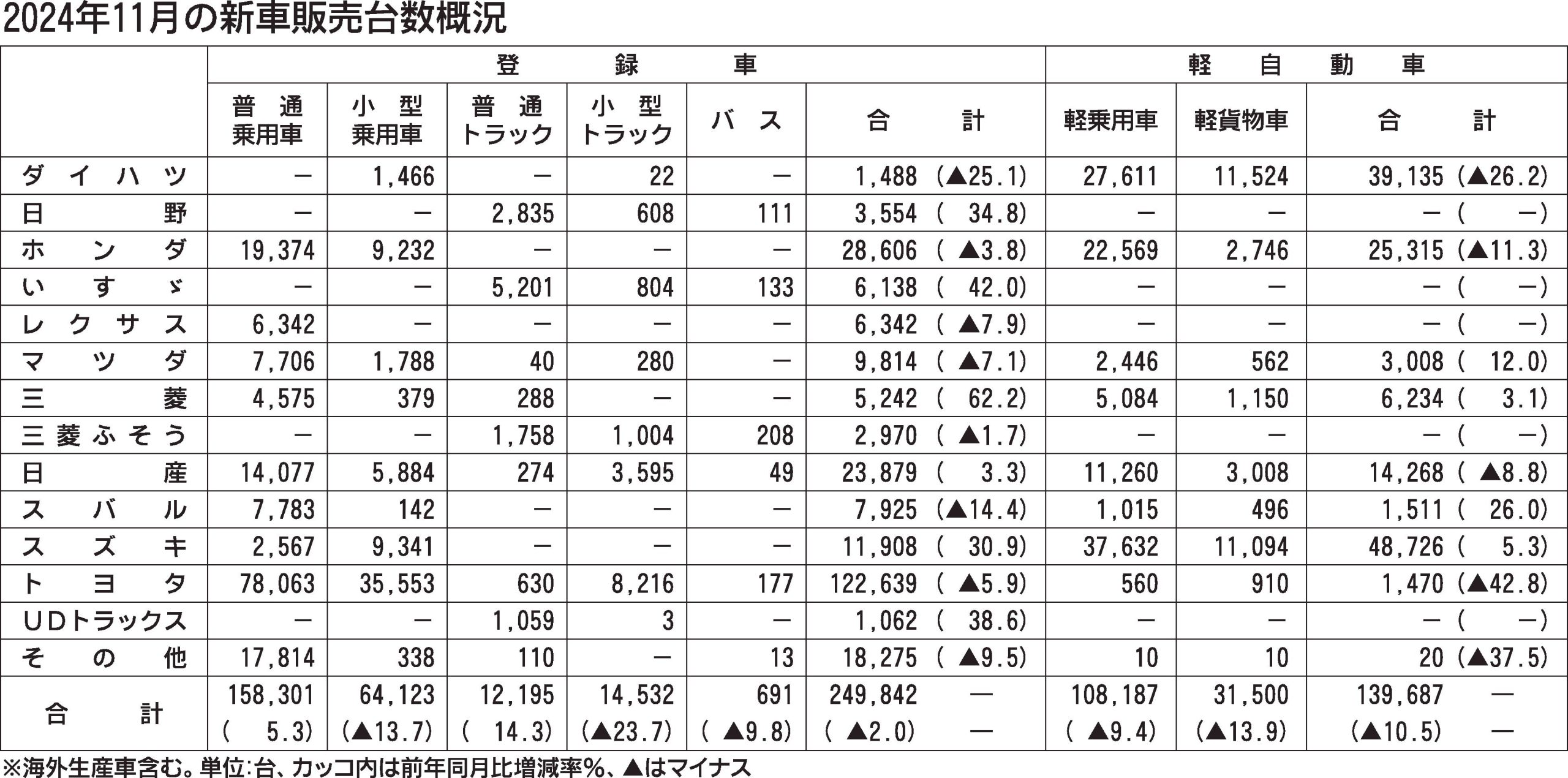 〈2024年11月の新車販売台数概況〉