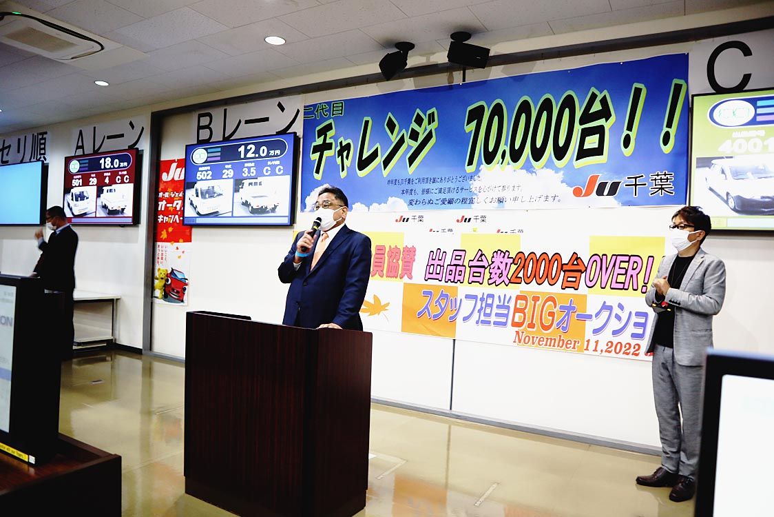 【千葉】JU千葉(千﨑悟之理事長)は「ディーラー協賛スタッフ担当ビッグAA」を開いた=写真。前年の同AAを301台上回る2021台を集荷。今期4回目となる出品2千台超の開催となった。成約率は68・4%だった。 20社を超えるディーラーから...