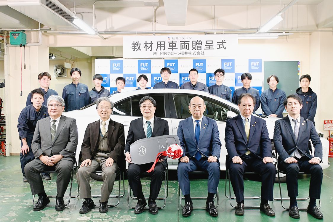 【福井】トヨタカローラ福井(田中森社長)は、私立福井工業大学(掛下知之学長)に教材車として2023年式のトヨタ自動車「カローラ」1台を寄贈した。同社設立60周年事業の一つである地域貢献活動の一環として実施した。 福井工業大学がカローラ福井...
