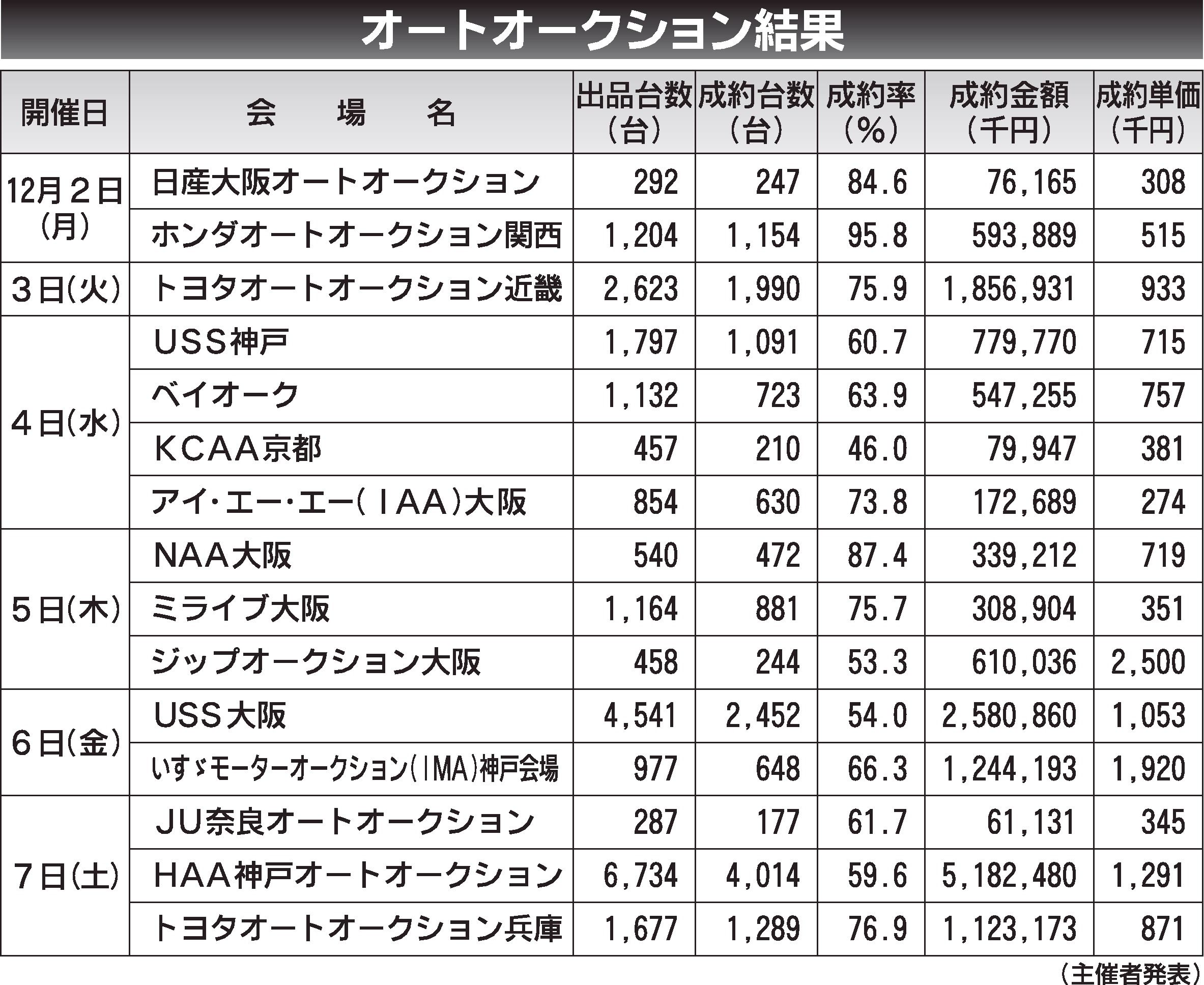 〈オートオークション結果〉近畿地区 2024/12/2~7