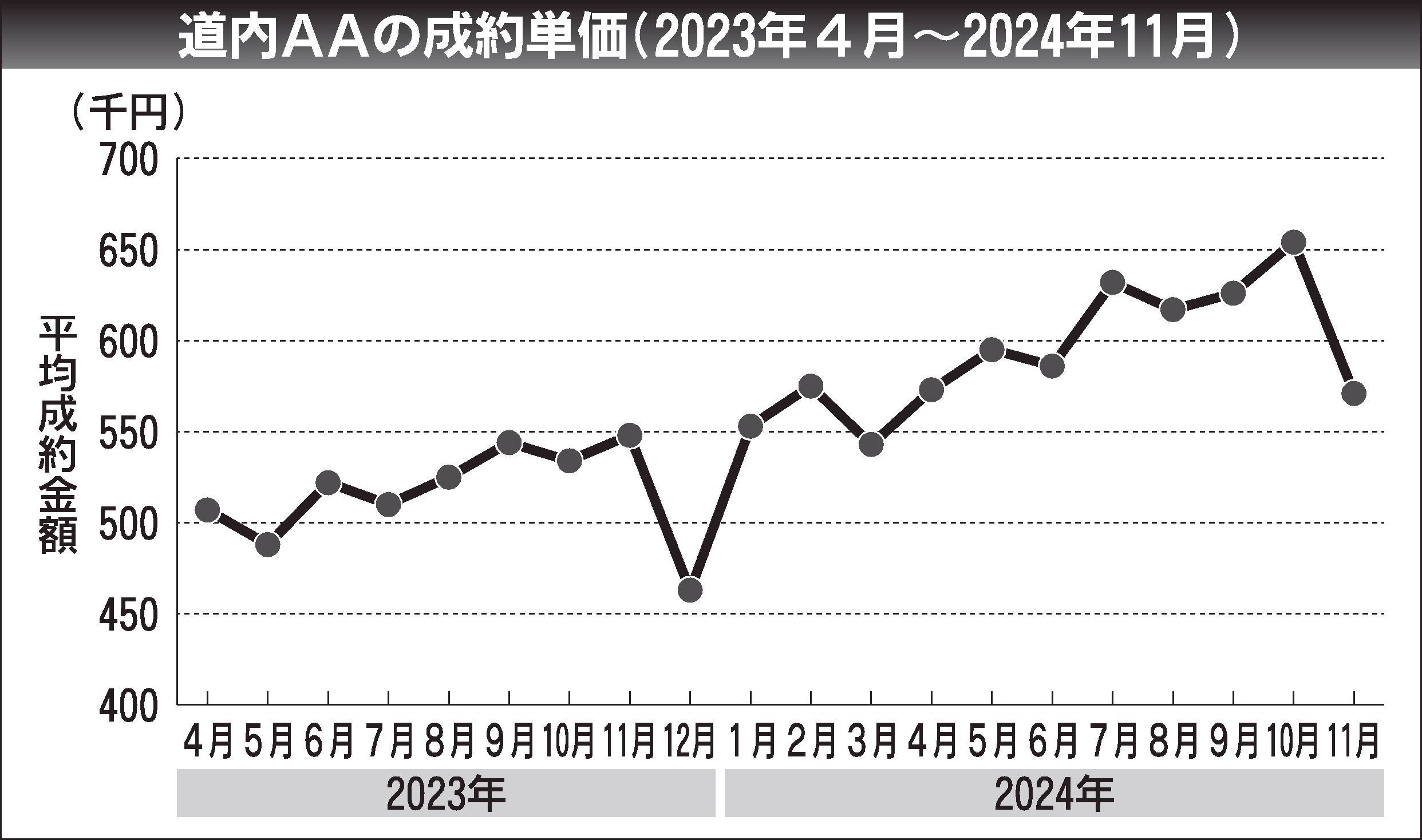 道内中古車オークション(AA)における11月の台当たり平均成約金額が5カ月ぶりに60万円を下回った。道内11会場の平均で57万1千円となり、前の月より8万3千円、12.7%下落した。前年同月との比較では2万3千円、4.1%高い。 日刊自動...