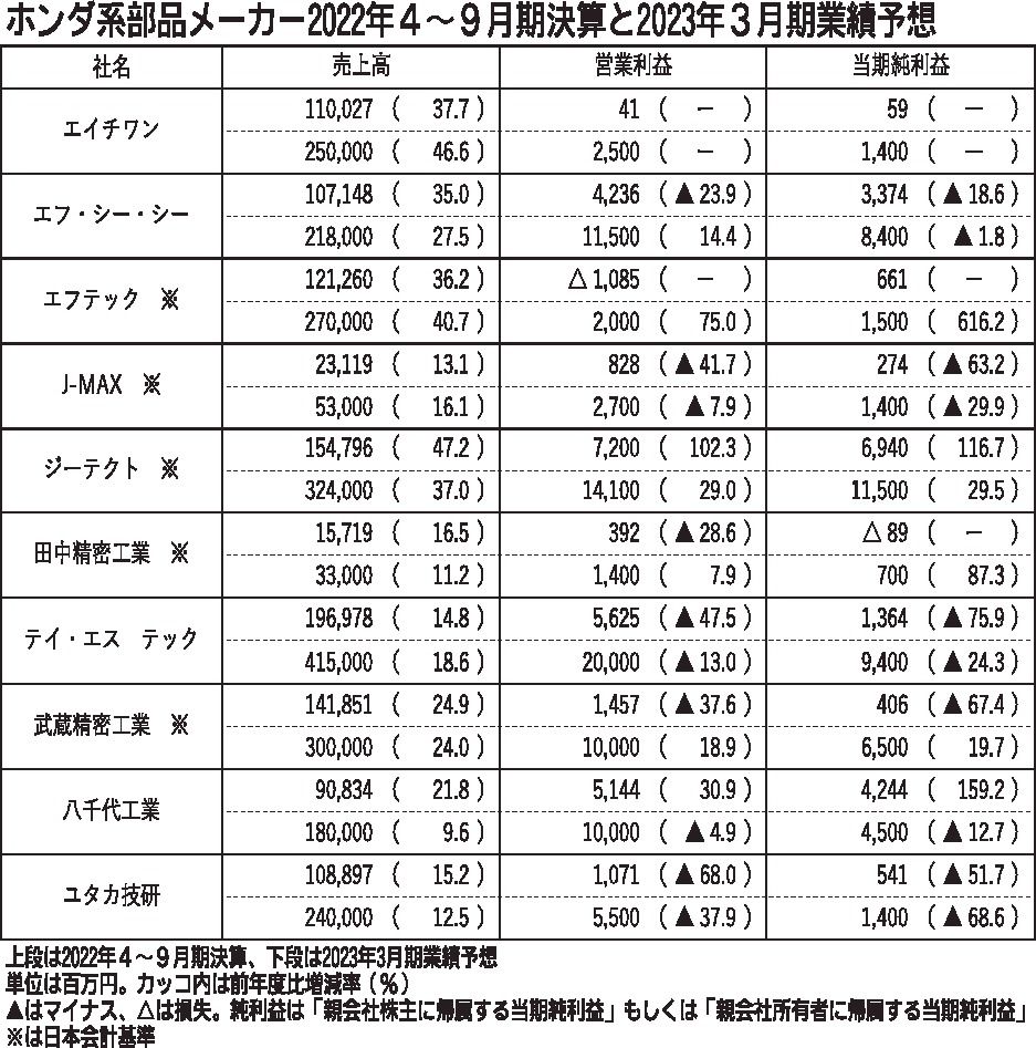 ホンダを主要納入先とする上場部品メーカーの業績が振るわない。2022年4~9月期は、円安ドル高による為替換算の影響で増収となったものの、半導体不足や中国のゼロコロナ政策によるサプライチェーン(供給網)混乱などの影響で、ホンダの四輪車生産台...