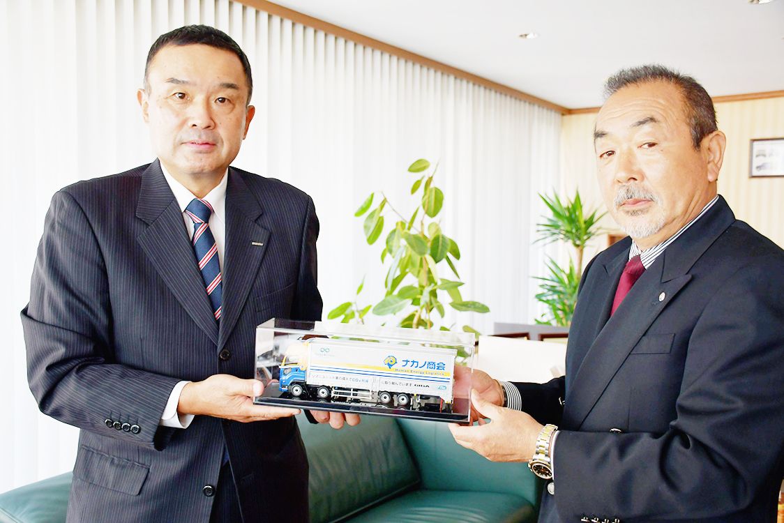 いすゞ自動車首都圏、ナカノ商会にリマニユニット車 小河原会長が訪問