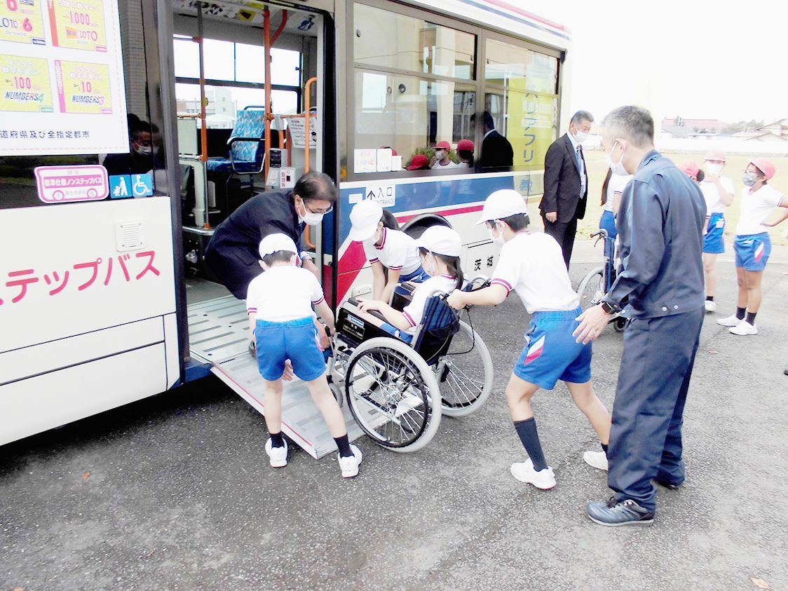 【水戸】関東運輸局茨城運輸支局と水戸市は、9月下旬から10月半ばにかけ、水戸市内の4小学校で「交通バリアフリー教室」を開催した=写真。 車いすと高齢者疑似体験をセットとし、実際の路線バス車両(ノンステップバス)などへの乗り降りやその介助を...
