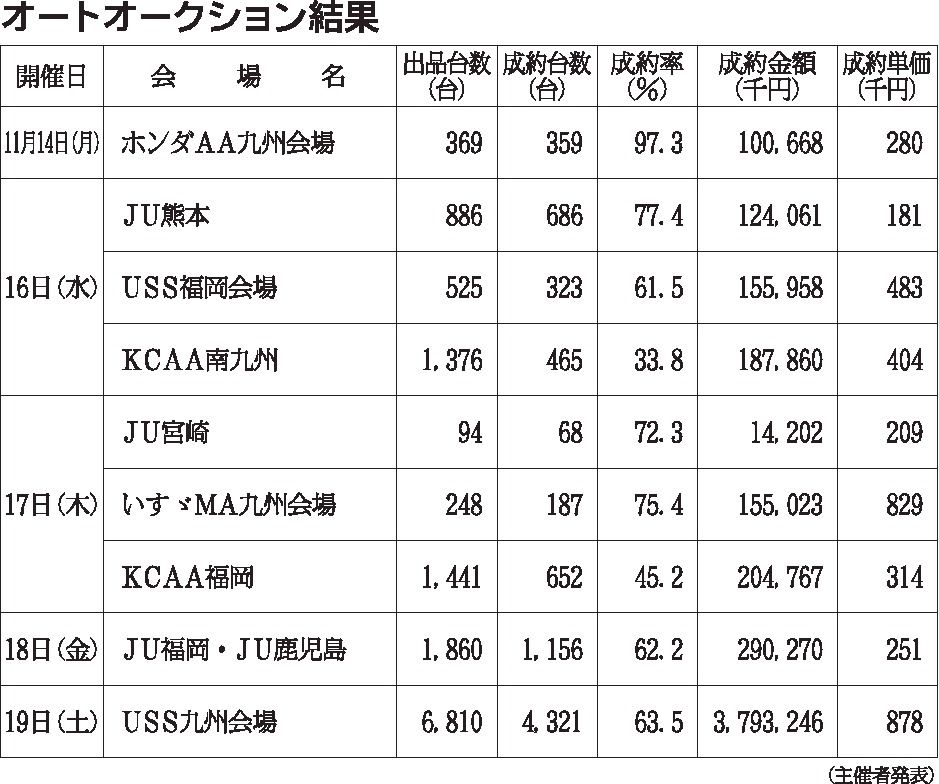 〈オートオークション結果〉九州地区 2022/11/14~19