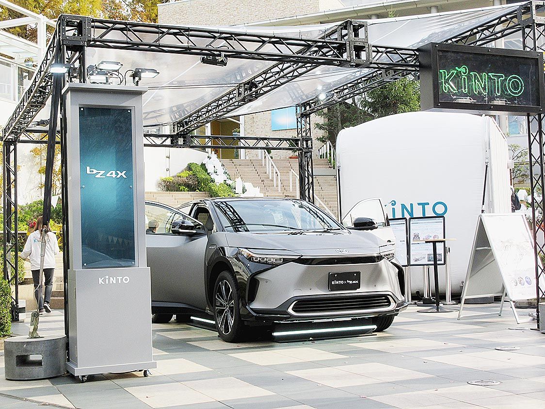 KINTOは、名古屋市千種区の星が丘テラスで電気自動車(EV)「bZ4X」の試乗会を開催した。事前に試乗申し込みをした100組を超えるユーザーがEVならではの特性を堪能した=写真。 試乗会は新車投入直後の6月に予定されていた東名阪でのイベ...